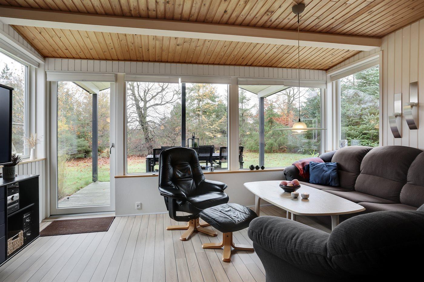 Et sommerhus i træ fra 1980, totalrenoveret i 2004 og løbende renoveret, beliggende på dejlig, ugenert naturgrund. Til huset hører åben terrasse med havemøbler.