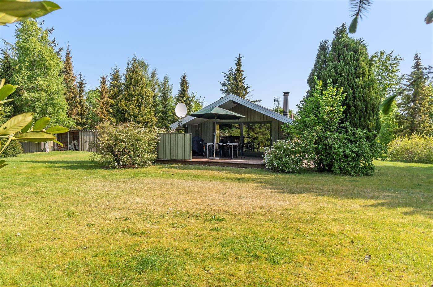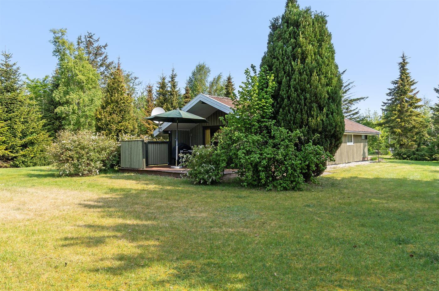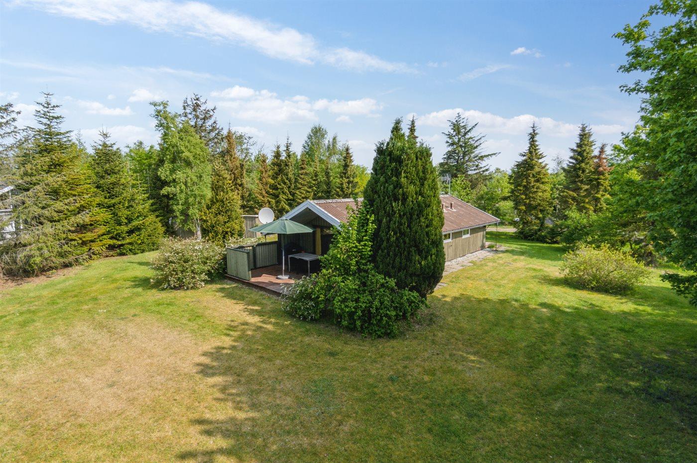 Ferieboligen er beliggende på en 1400 m² stor naturgrund. Der er 500 m til havet. Nærmeste forretning er beliggende i en afstand af 750 m. Til ferieboligen hører 20 m² terrasseareal. Der er redskabsrum. Gynge. Parkering ved ferieboligen.