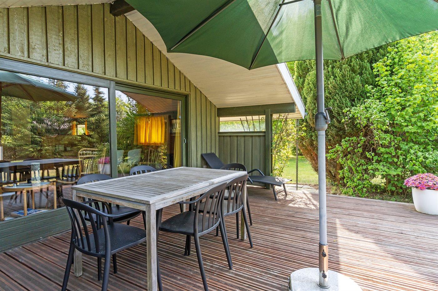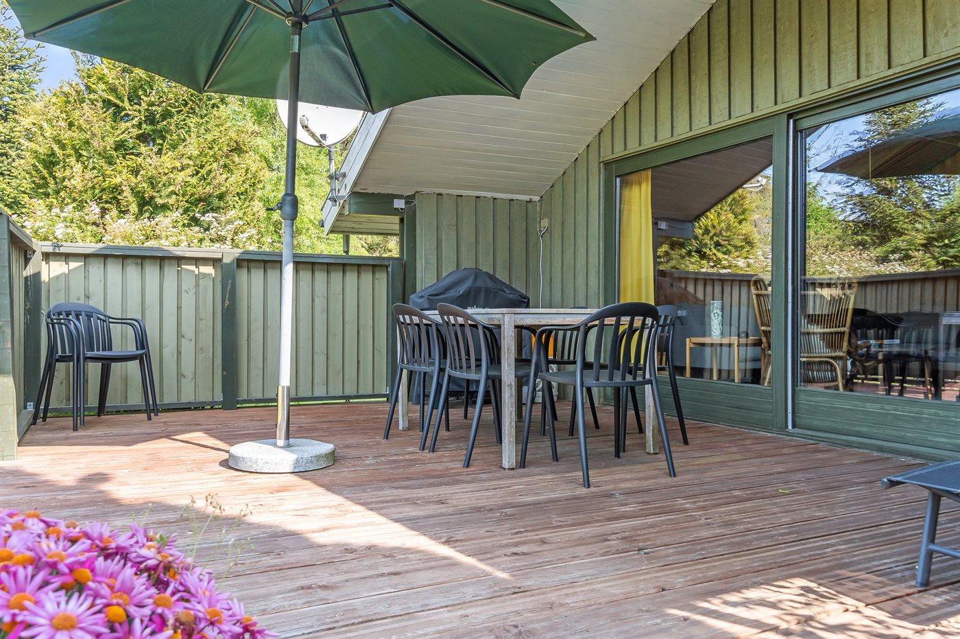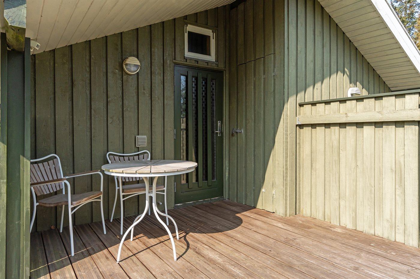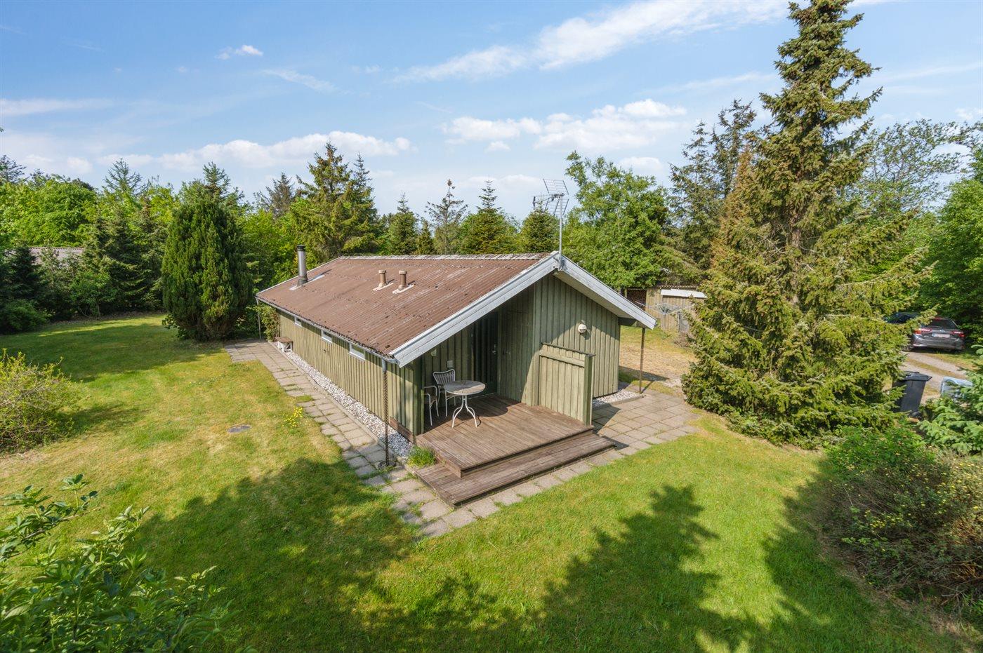 Ferieboligen er beliggende på en 1400 m² stor naturgrund. Der er 500 m til havet. Nærmeste forretning er beliggende i en afstand af 750 m. Til ferieboligen hører 20 m² terrasseareal. Der er redskabsrum. Gynge. Parkering ved ferieboligen.