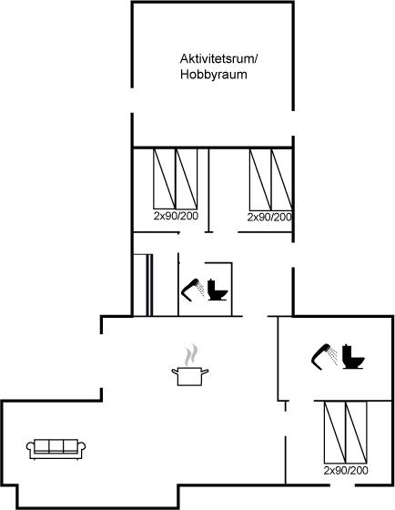 Der er i alt 4 soveværelser. Sovepladserne fordeler sig på: 6 sovepladser i enkeltsenge. 2 sovepladser i køjeseng. Derudover er der 1 stk. barneseng.