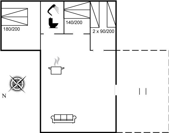Der er i alt 3 soveværelser. Sovepladserne fordeler sig på: 4 sovepladser i dobbeltsenge. 2 sovepladser i enkeltsenge. Derudover er der 1 stk. barneseng.