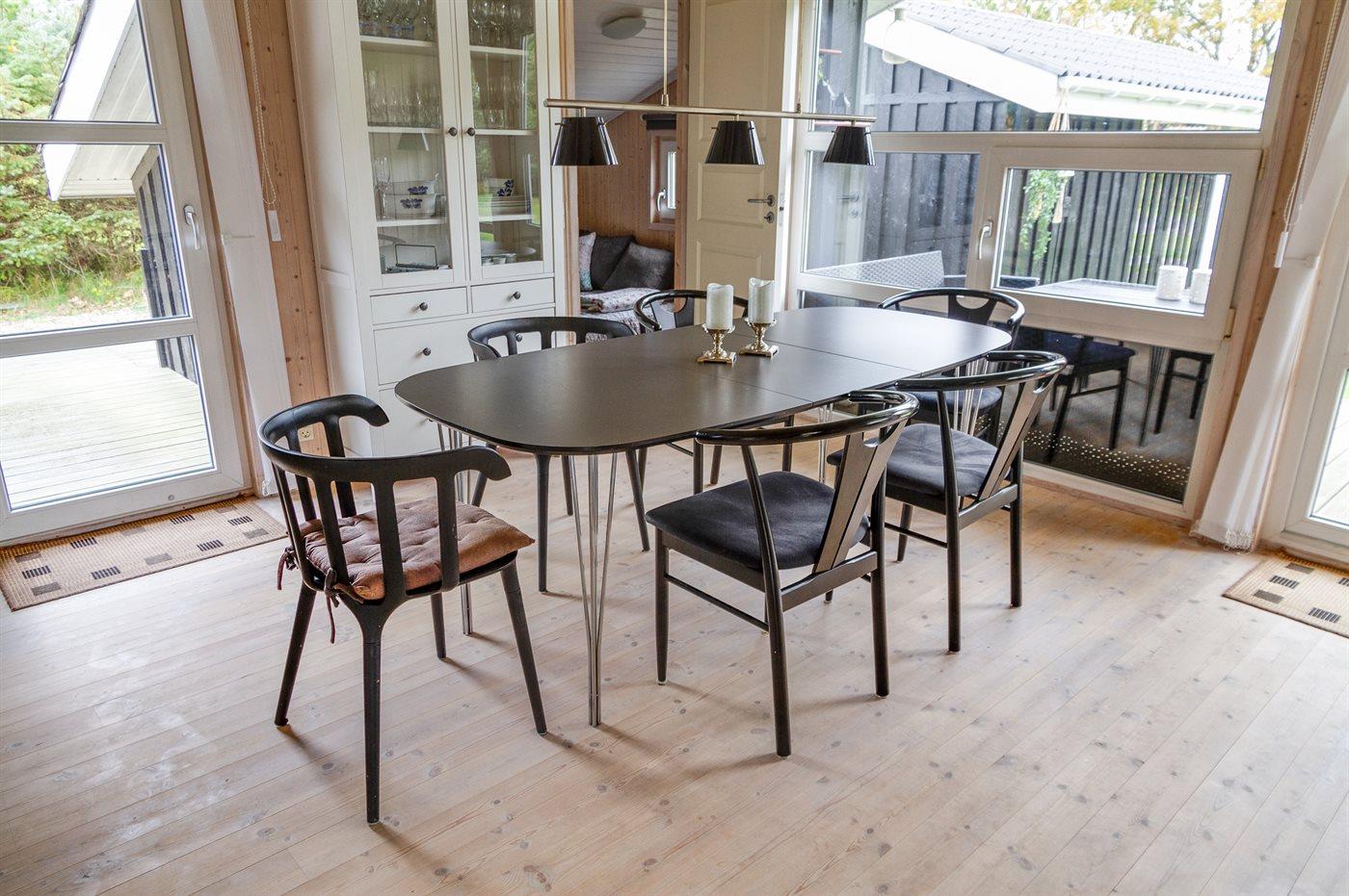 Sommerhuset egner sig til 8 personer. Ferieboligen er på 100 m² og er bygget i 2006. Det er tilladt at medbringe 1 husdyr. Ferieboligen er udstyret med energibesparende varmepumpe. Der er gulvvarme i alle klinkegulve. Ferieboligen har vaskemaskine. Tørretumbler. Frysekapacitet på 130 liter. Der er desuden brændeovn. Til de små er der 1 stk. barnestol.