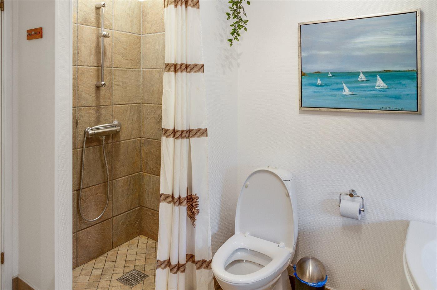 Der er 2 badeværelser med bruseniche og 2 toiletter. Der er gulvvarme på 2 badeværelser.