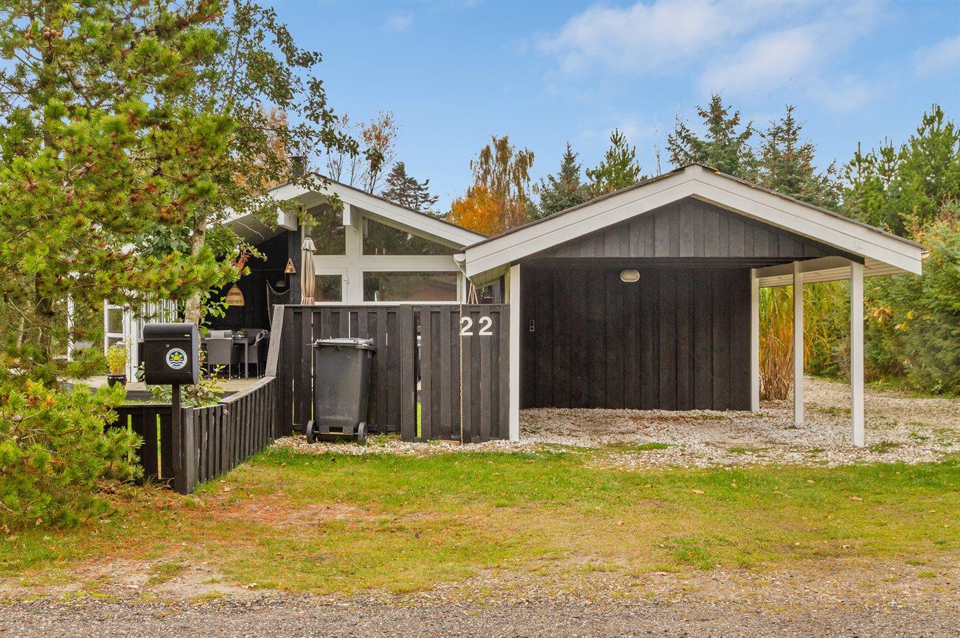Ferieboligen er beliggende på en 1000 m² stor naturgrund. Der er 1000 m til havet. Nærmeste forretning er beliggende i en afstand af 3000 m. Der er en golfbane i en afstand af 6000 m. Til ferieboligen hører 100 m² åbent terrasseareal. Desuden er der 15 m² overdækket terrasse. Der er redskabsrum. Gynge. Trampolin. Rutchebane. Bålsted. Grill til rådighed. Der er garage til rådighed. Parkering ved ferieboligen.