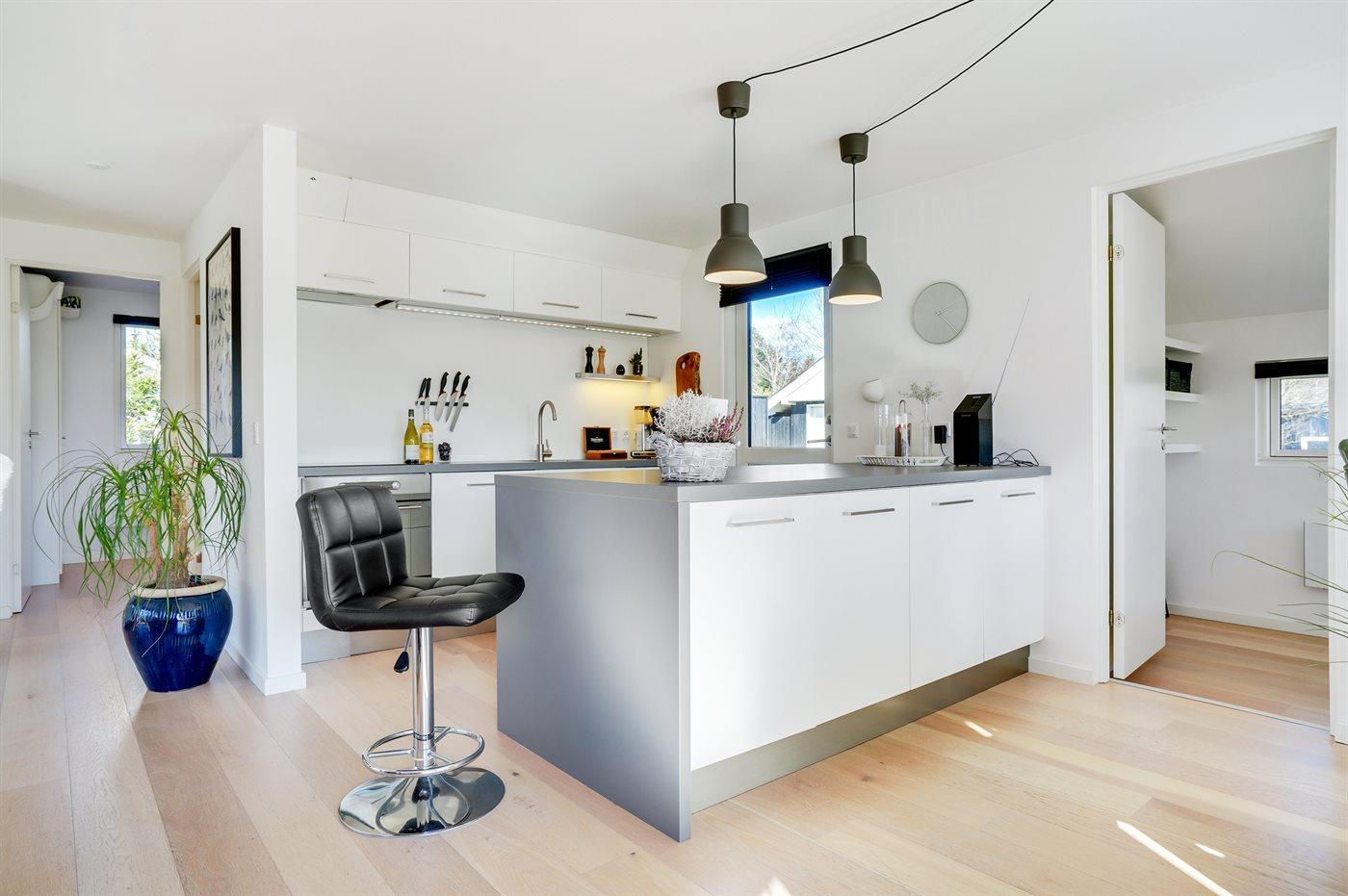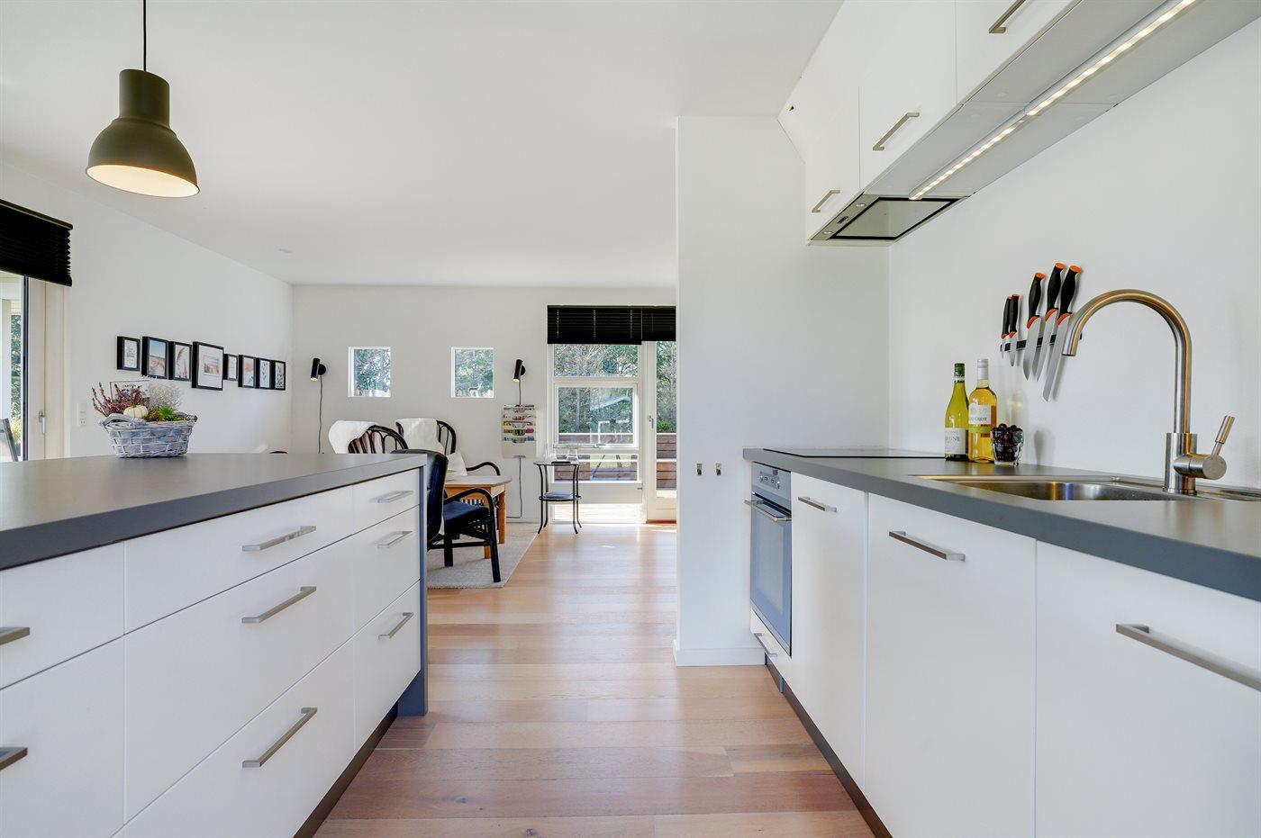 Køkkenet er udstyret med 2 køleskabe. Der er 4 keramiske kogeplader, varmluftovn, mikrobølgeovn samt opvaskemaskine.