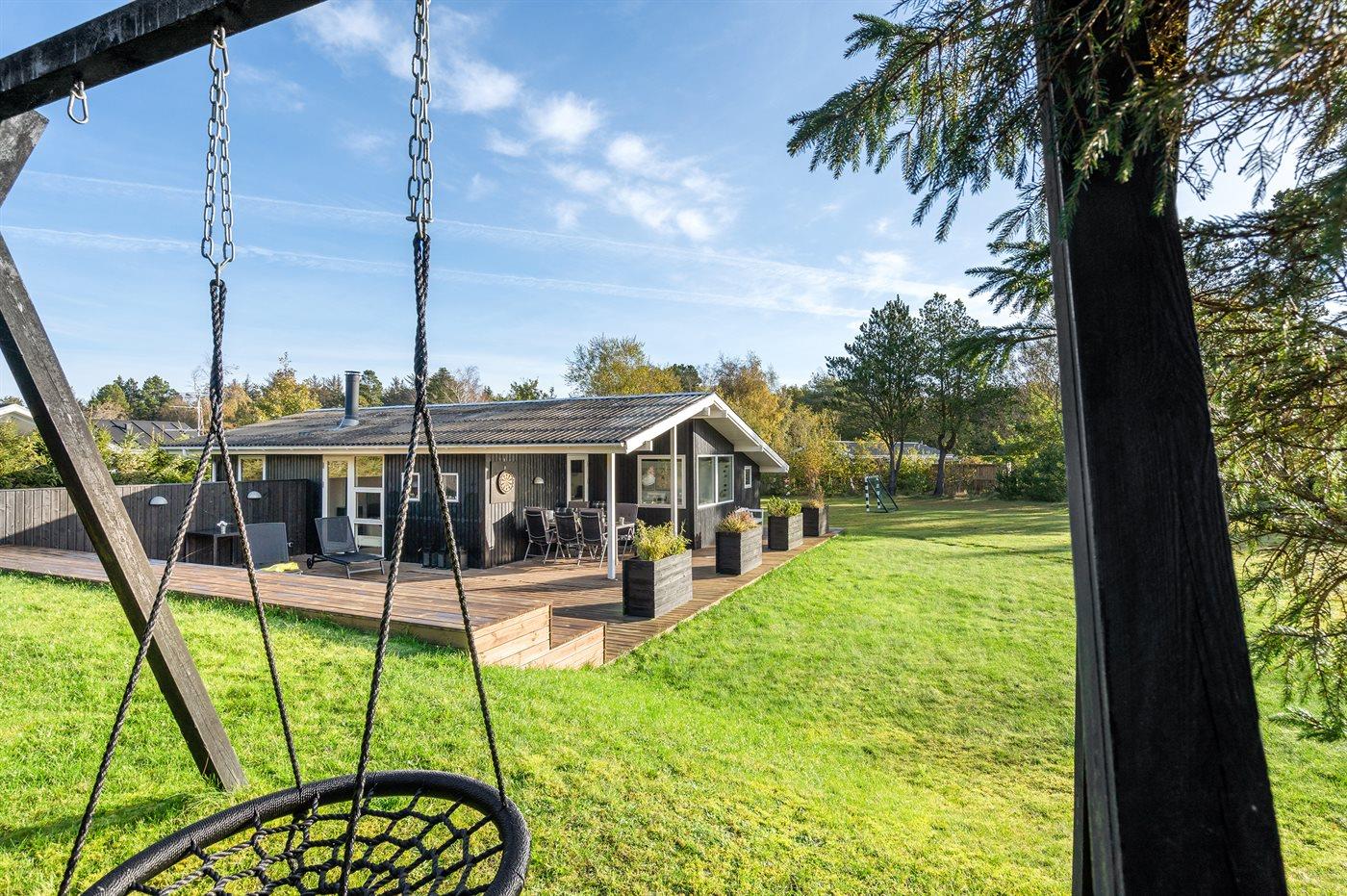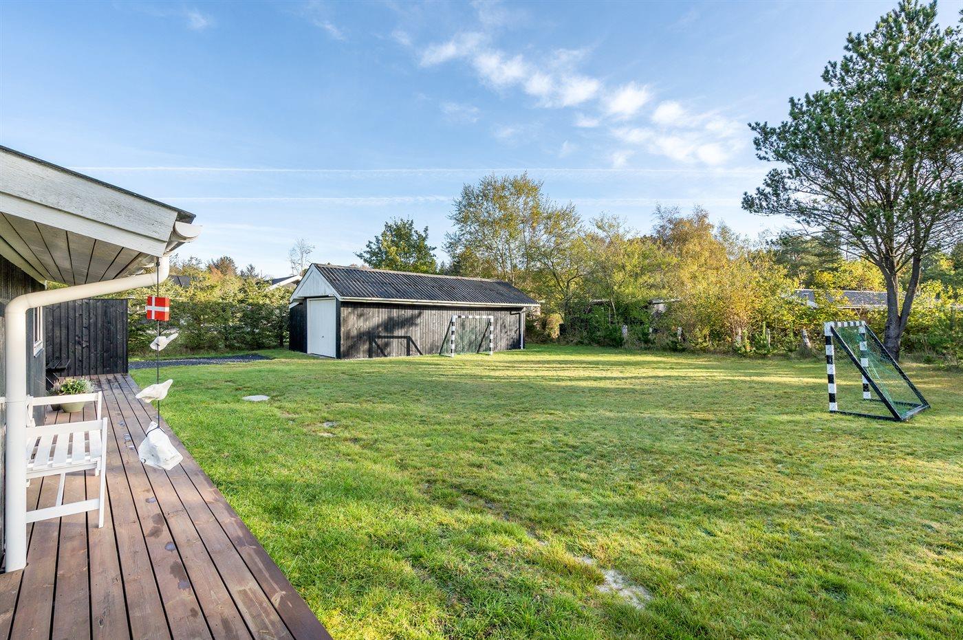 Ferieboligen er beliggende på en 1600 m² stor havegrund. Der er 600 m til havet. Nærmeste forretning er beliggende i en afstand af 600 m. Til ferieboligen hører 85 m² terrasseareal. Desuden er der 15 m² overdækket terrasse. Gynge. Fodboldmål. Bålsted. Grill til rådighed. Parkering ved ferieboligen.