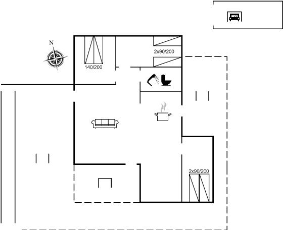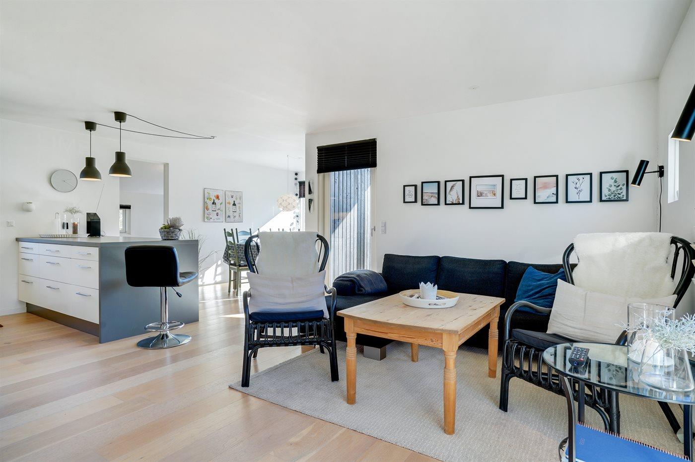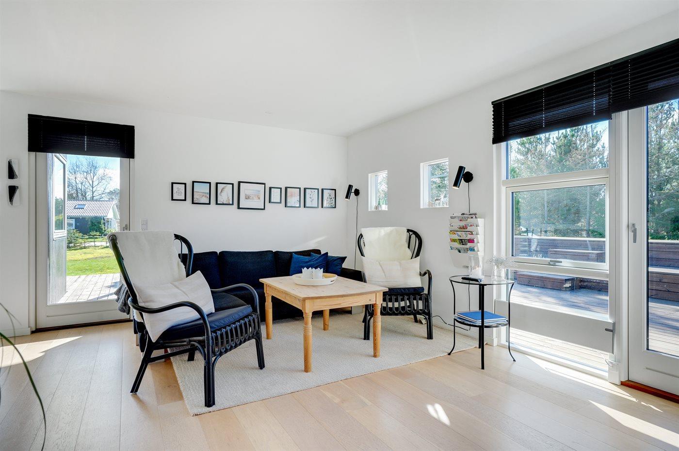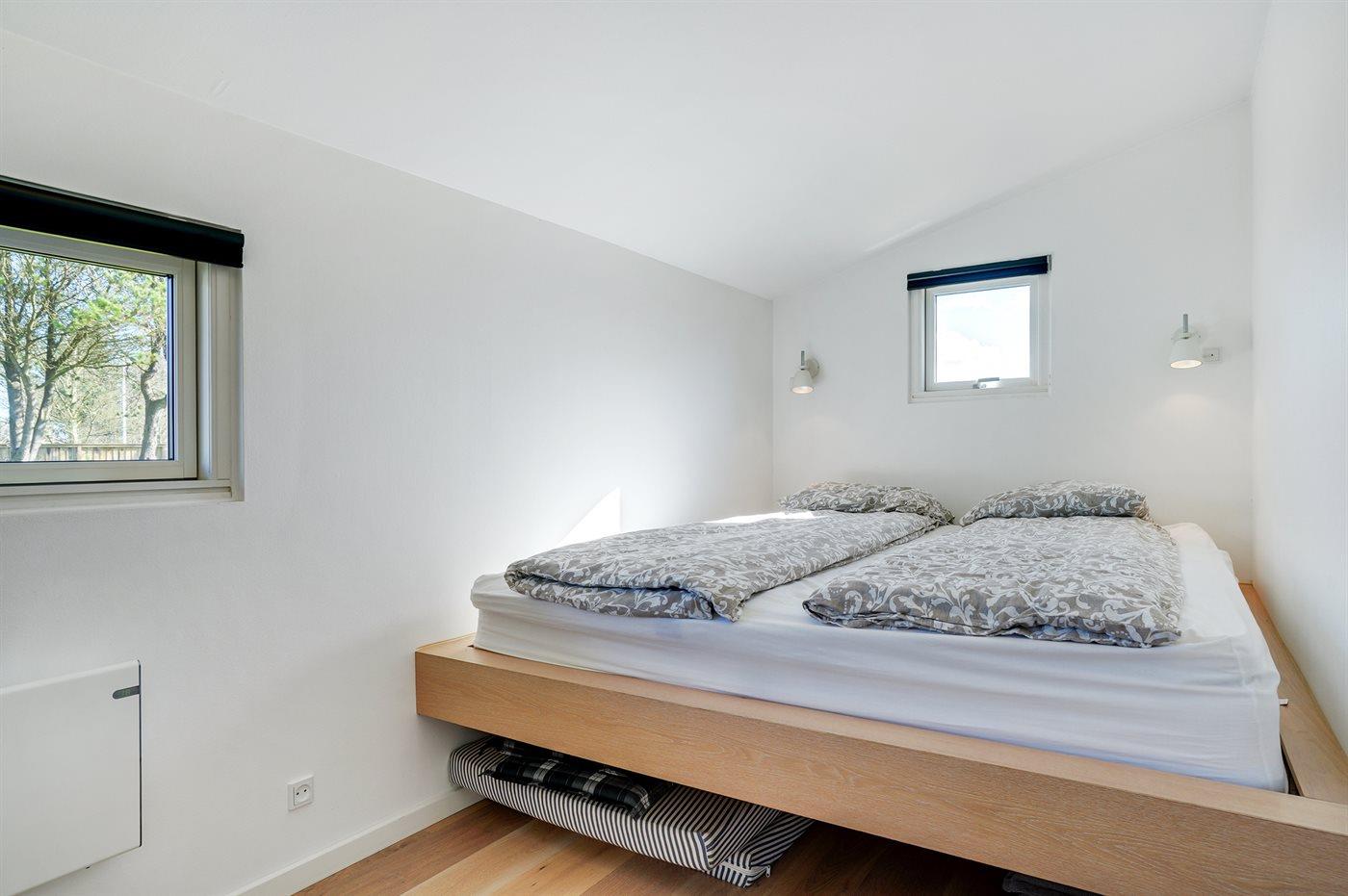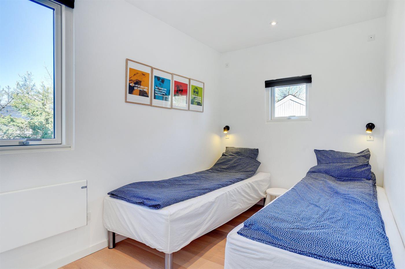 Der er i alt 3 soveværelser. Sovepladserne fordeler sig på: 4 sovepladser i dobbeltsenge. 2 sovepladser i enkeltsenge.