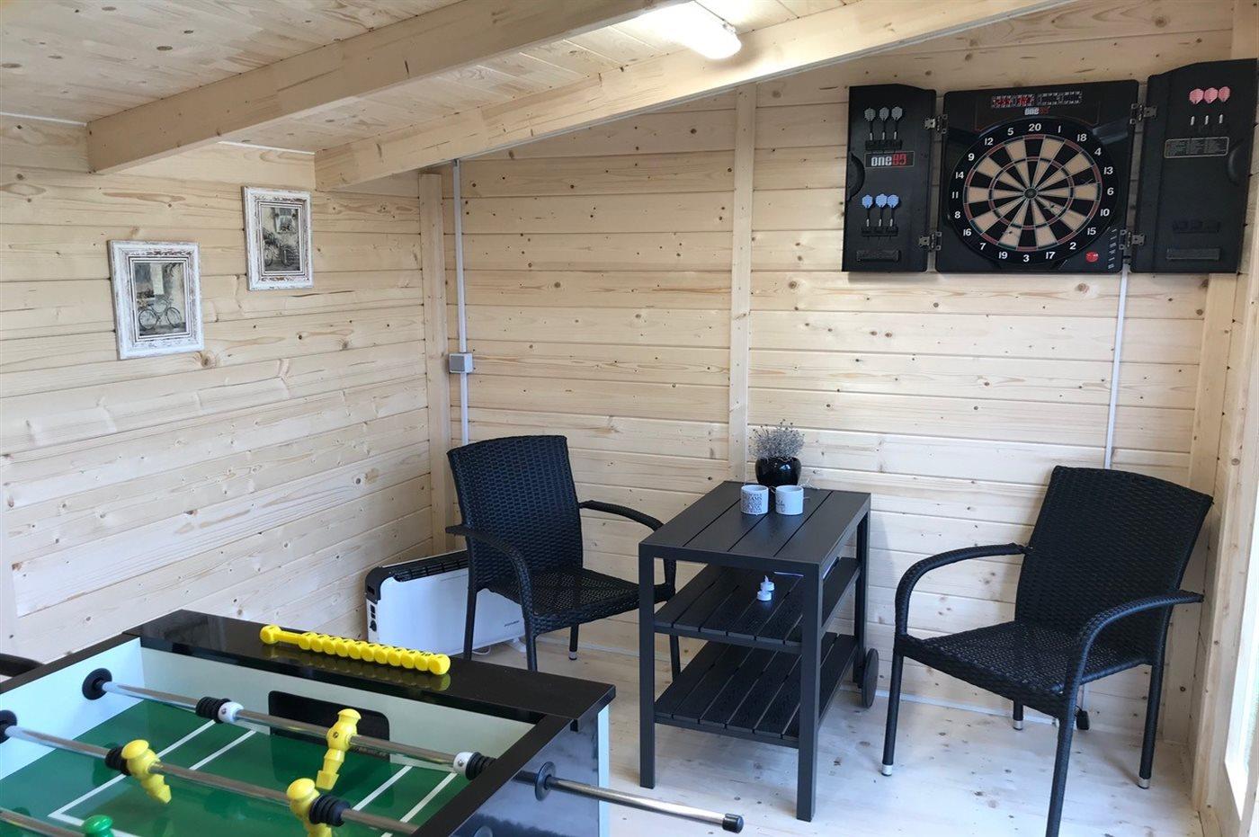 I aktivitetsrummet er der følgende udstyr: Dart. Bordfodbold.