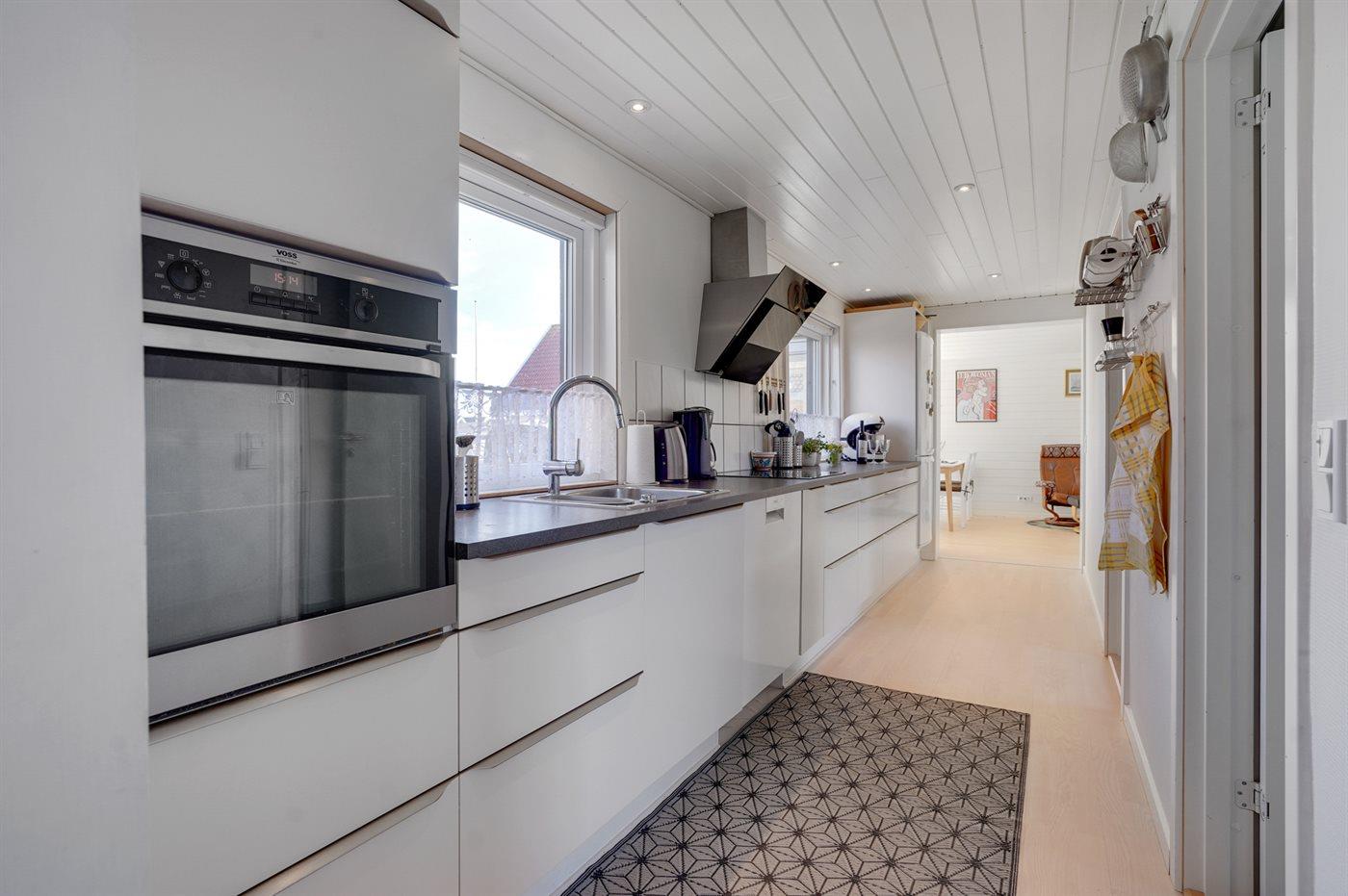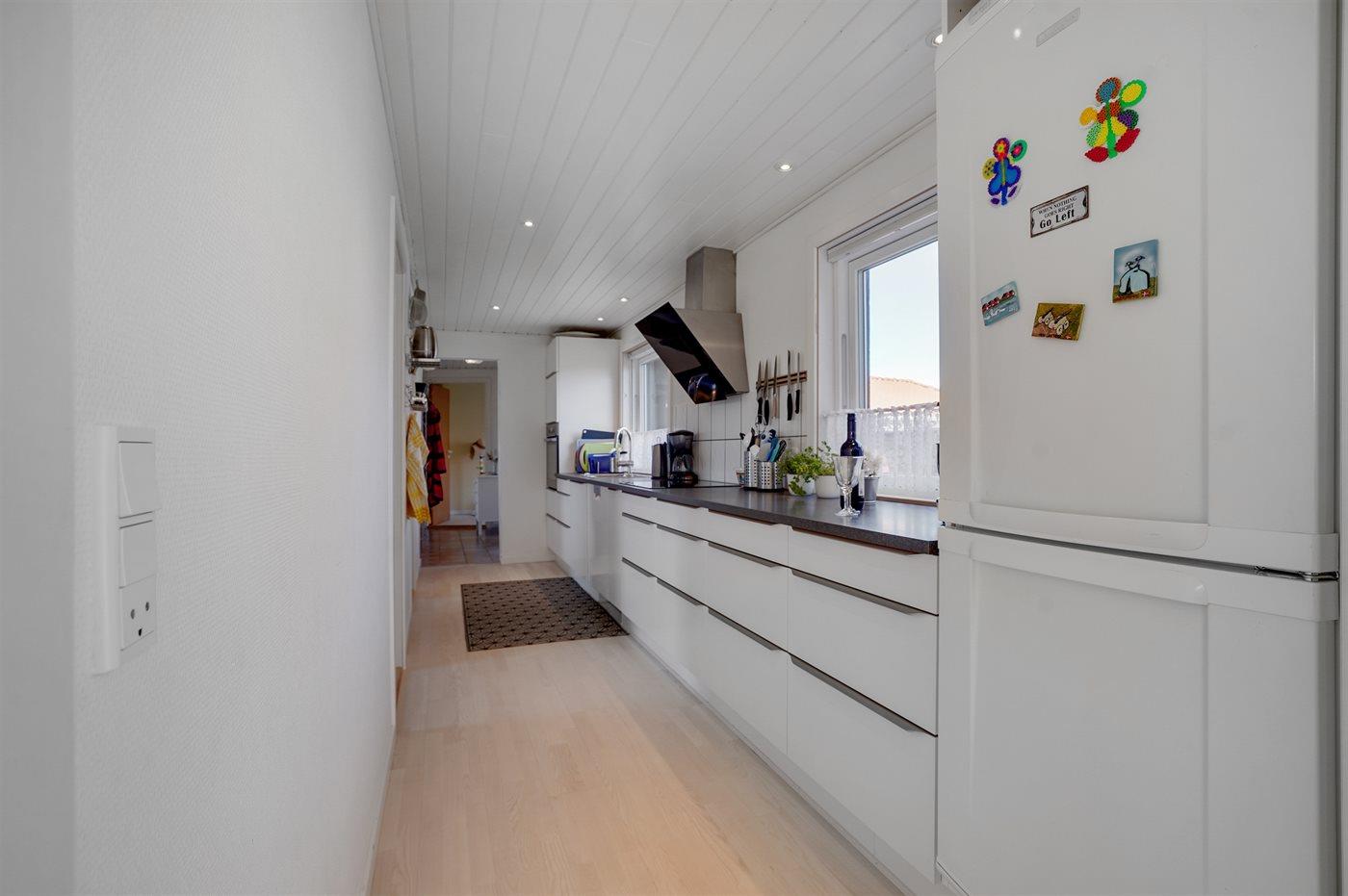 Køkkenet er udstyret med 1 køleskab. Der er 4 induktionskogeplader, miniovn, varmluftovn, mikrobølgeovn samt opvaskemaskine Der er gulvvarme i køkkenet.