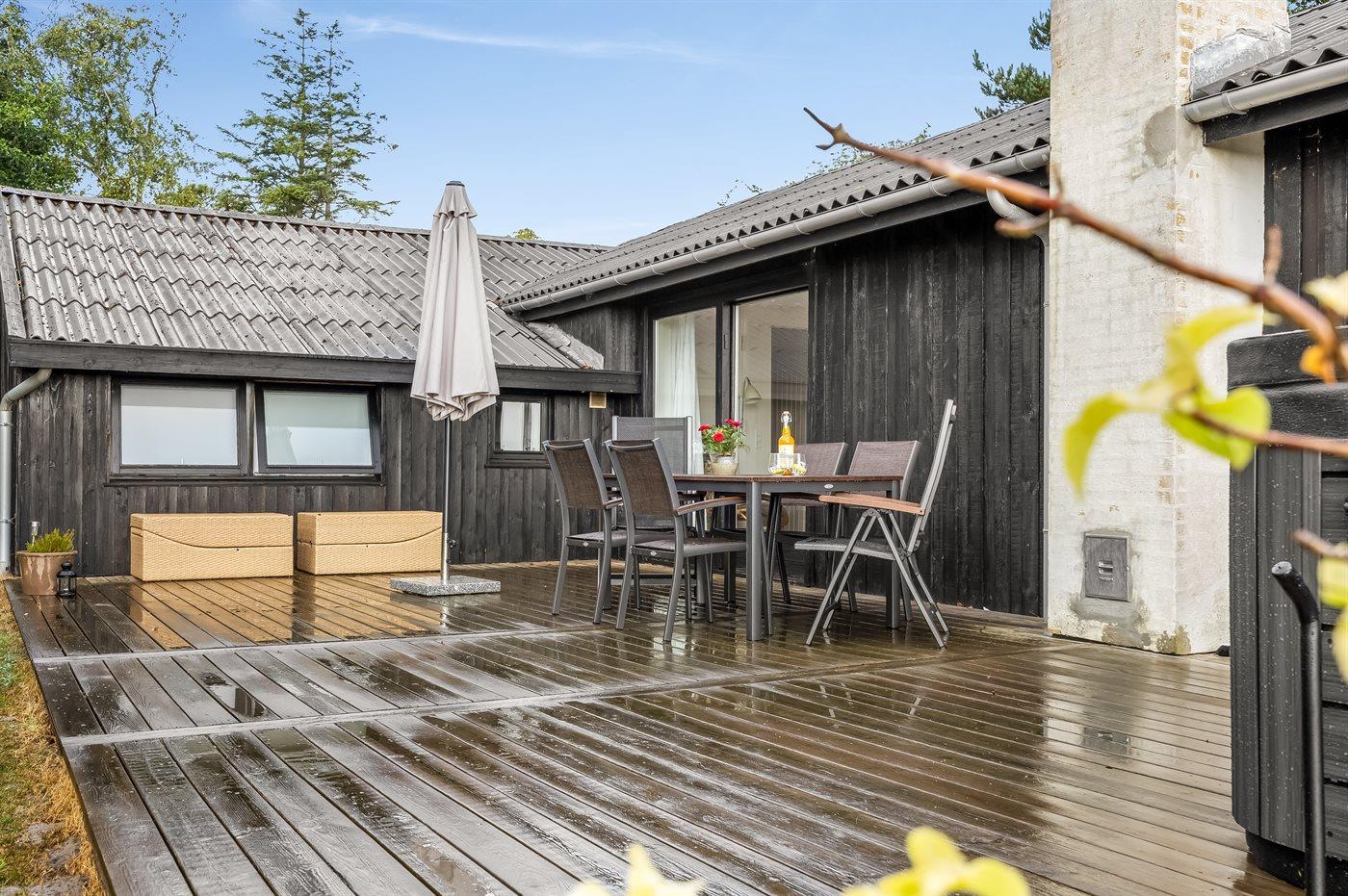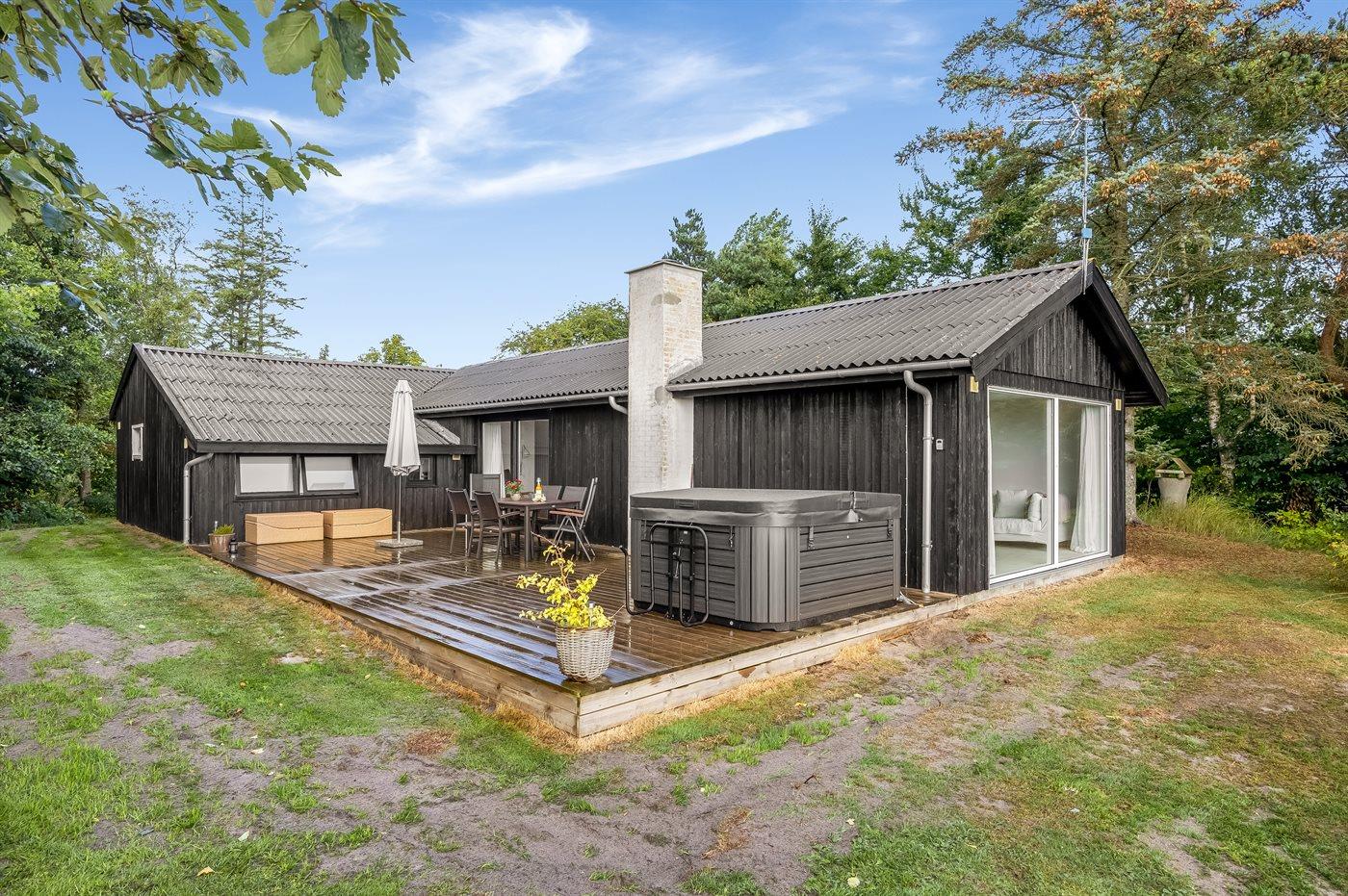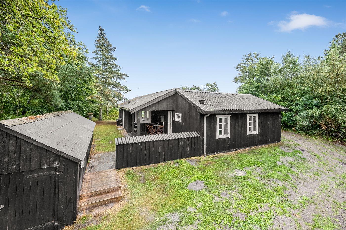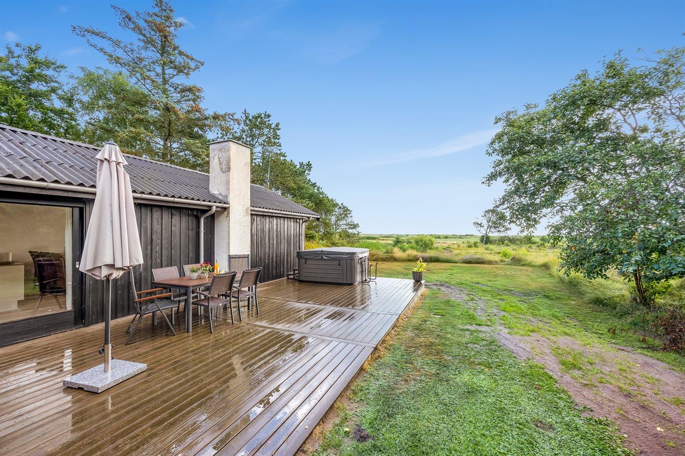 Ferieboligen er beliggende på en 5060 m² stor naturgrund. Der er 250 m til havet. Der er 6600 m til fjorden. Nærmeste forretning er beliggende i en afstand af 1290 m. Der er en golfbane i en afstand af 5500 m. Til ferieboligen hører åbent terrasseareal. Desuden er der overdækket terrasse. Grill til rådighed. Parkering ved ferieboligen.