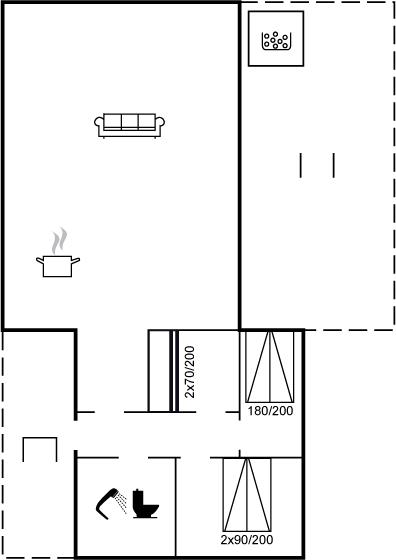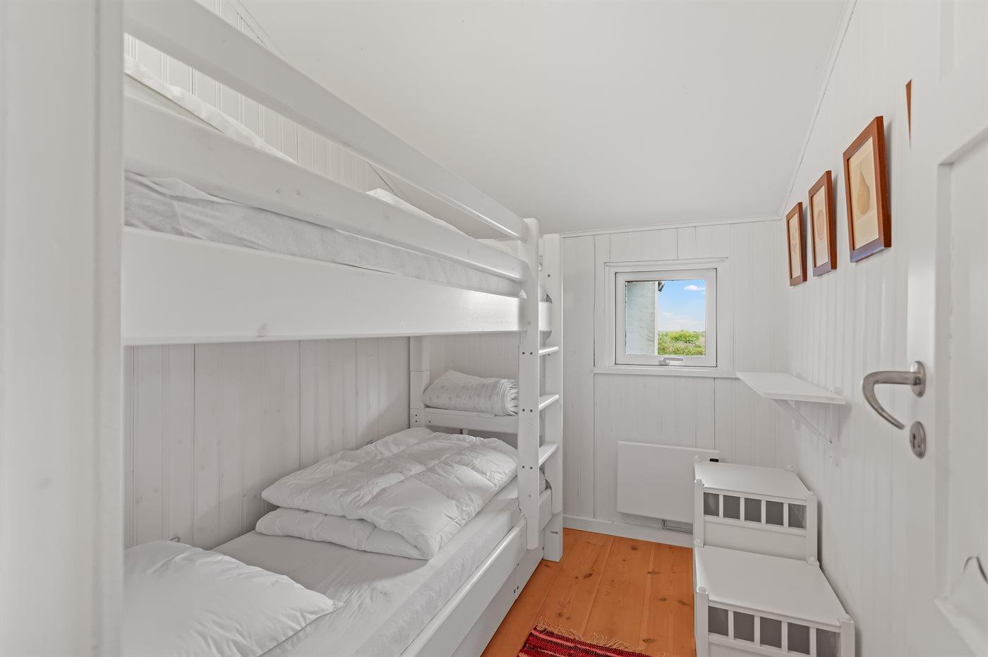 Der er i alt 3 soveværelser. Sovepladserne fordeler sig på: 2 sovepladser i dobbeltseng. 2 sovepladser i enkeltsenge. 2 sovepladser i køjeseng.
