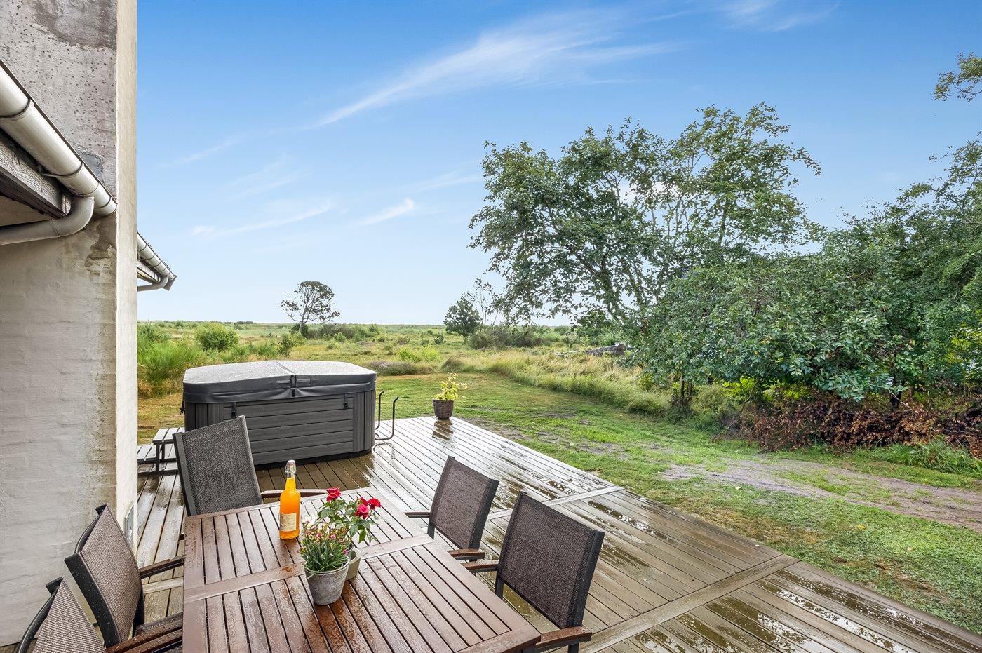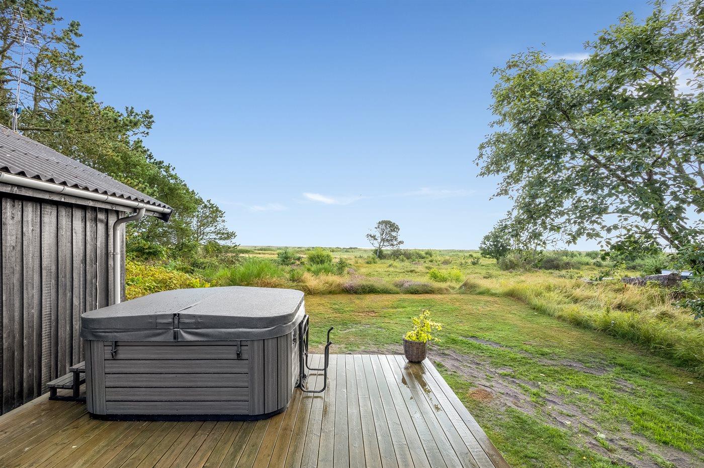 Der er mulighed for afslapning i udendørs standvandsspa til 5 personer.