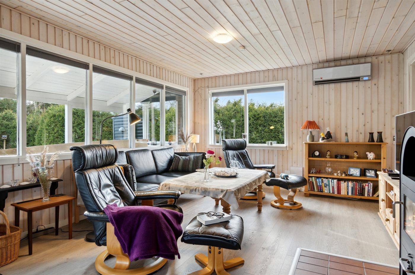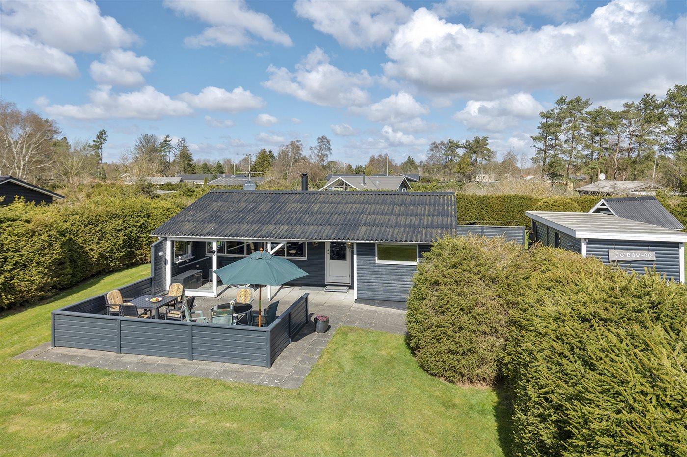 I naturskønne omgivelser ligger dette hyggeligt indrettede sommerhus - i et roligt ferieområde. Til sommerhuset, som ligger på en helt ugeneret grund hører fine og til dels overdækkede terrassearealer. Indenfor ca. 1500 meter nås Hou, som byder på et hyggeligt havnemiljø og gode indkøbsmuligheder.