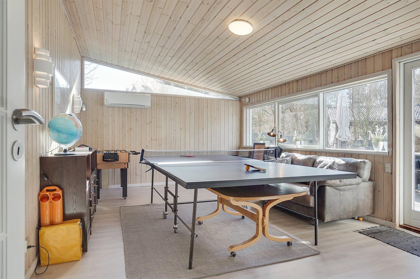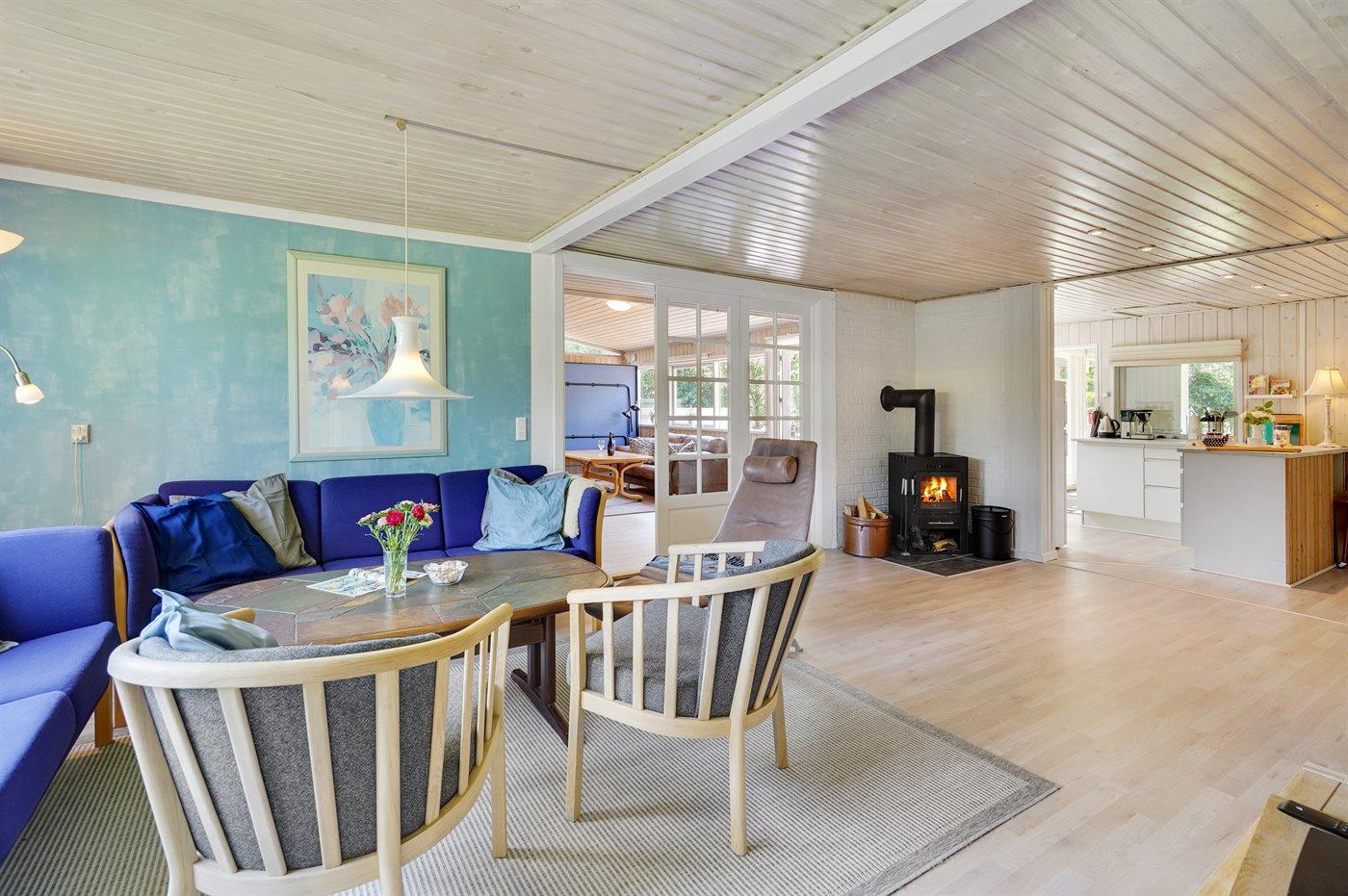 Stort og velindrettet sommerhus beliggende i naturskønne omgivelser nær vandet og den gode børnevenlige badestrand. Sommerhuset ligger helt ugeneret på den skønne grund og har bl.a. en fin nyopført træterrasse fra 2021 med 4 liggestole med tilhørende hynder. Aktivitetsrummet byder på gode muligheder for spil for hele familien.