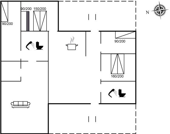 Der er i alt 4 soveværelser. Sovepladserne fordeler sig på: 4 sovepladser i dobbeltsenge. 2 sovepladser i enkeltsenge. 2 sovepladser i køjeseng.