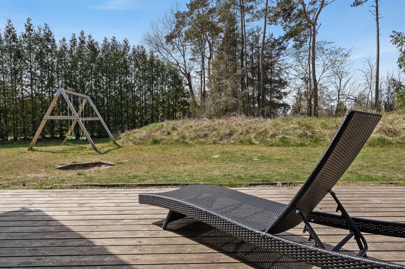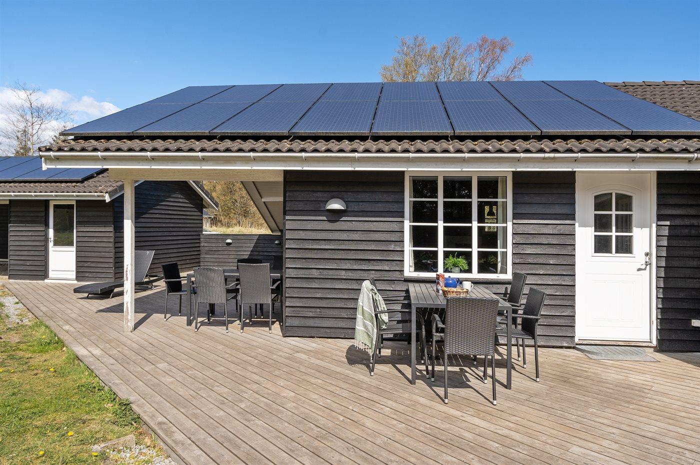 Der er en dejlig, stor terrasse, hvor en del deraf er overdækket, så der er rigelig mulighed for at finde en god hyggekrog og nyde aftensmaden tilberedt på grillen.