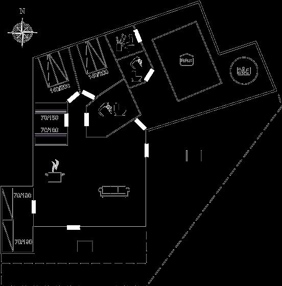 Der er 2 badeværelser med bruseniche og 2 toiletter. Der er gulvvarme på 2 badeværelser. I saunaen er der mulighed for afslapning. I den indendørs standvandsspa er der plads til 6 personer.