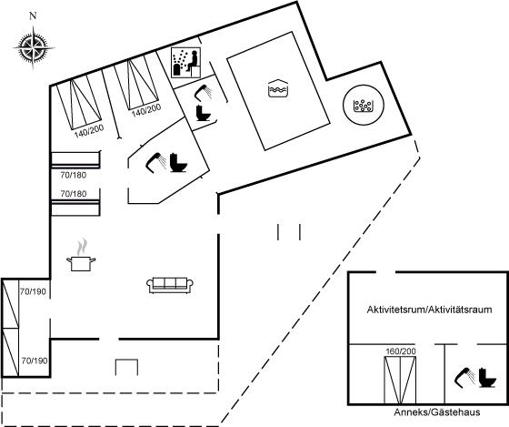 Der findes et nyt anneks, som er indrettet med et aktivitetsrum med forskellige aktiviteter som dart, mini-airhockey, mini-poolbord og TV samt et soveværelse med dobbeltseng og et badeværelse.