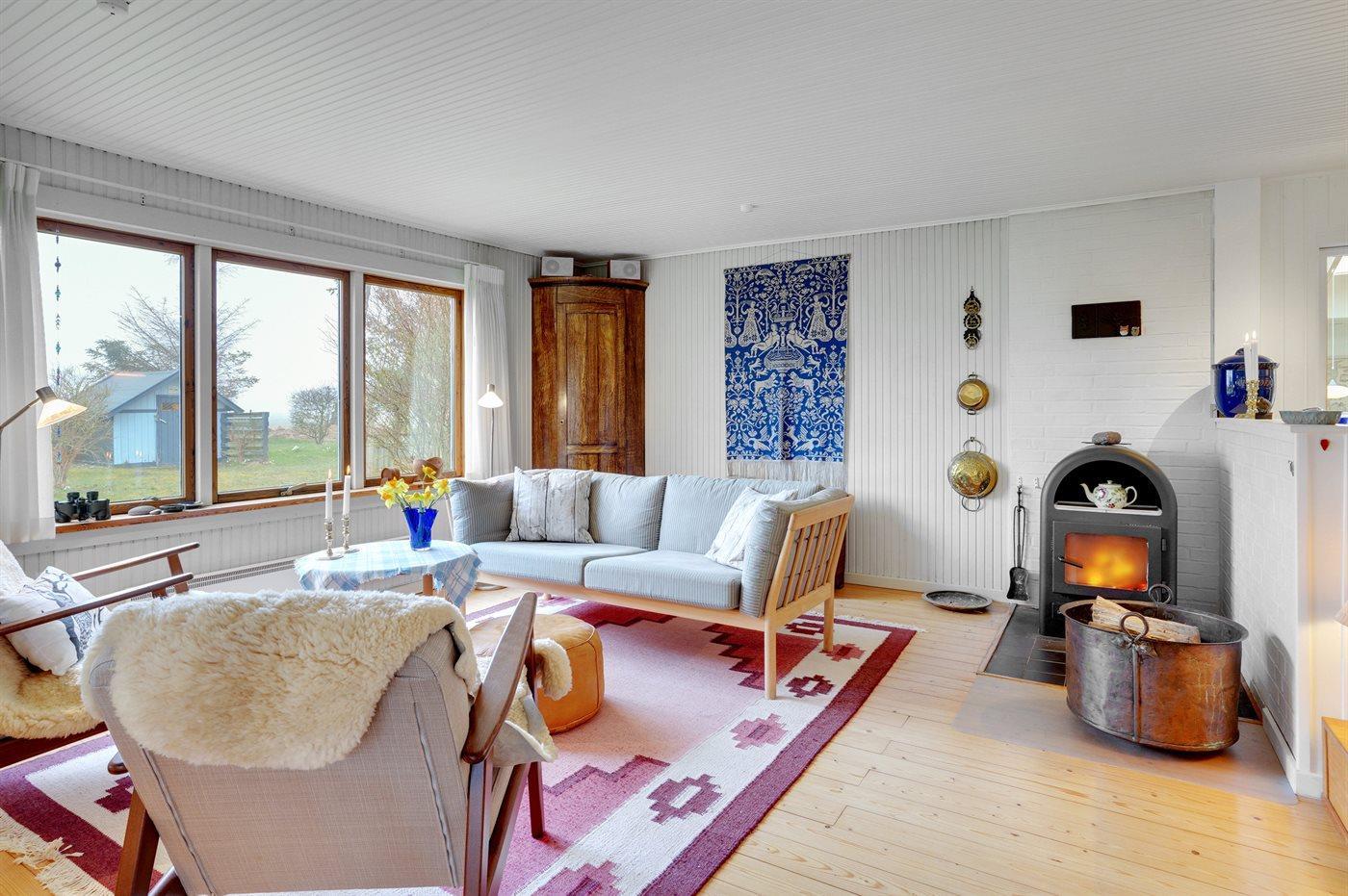 Hyggeligt og rummeligt sommerhus beliggende på en ugenert grund med udsigt til en mark med græssende køer. Her kan du holde ferie i særdeles landlig idyl, og stadig være nær såvel indkøbsmuligheder, det hyggelige havnemiljø i Hou samt god børnevenlige badestrand.