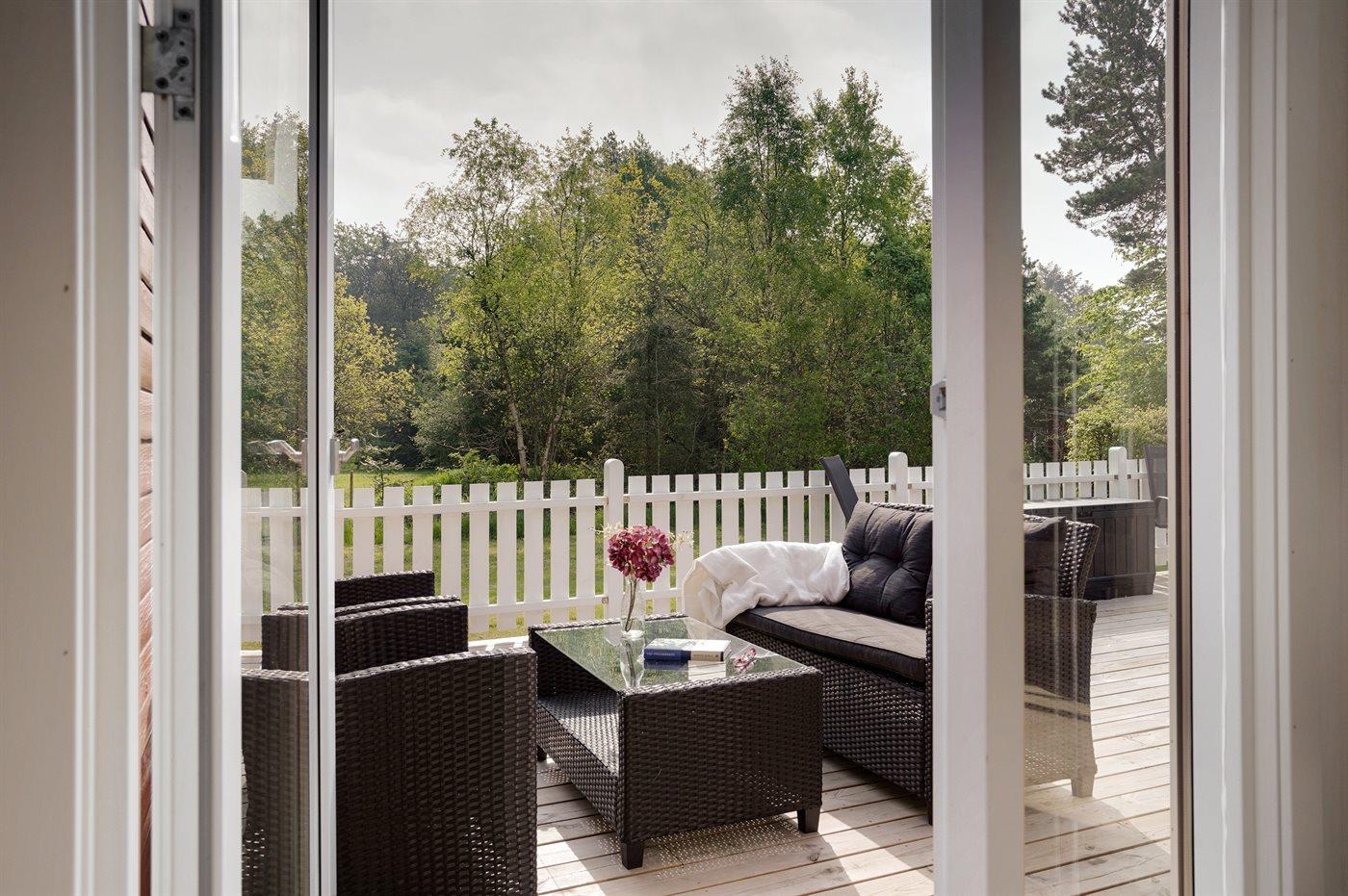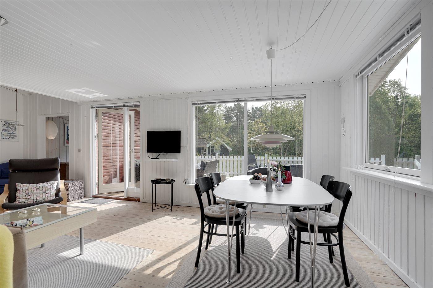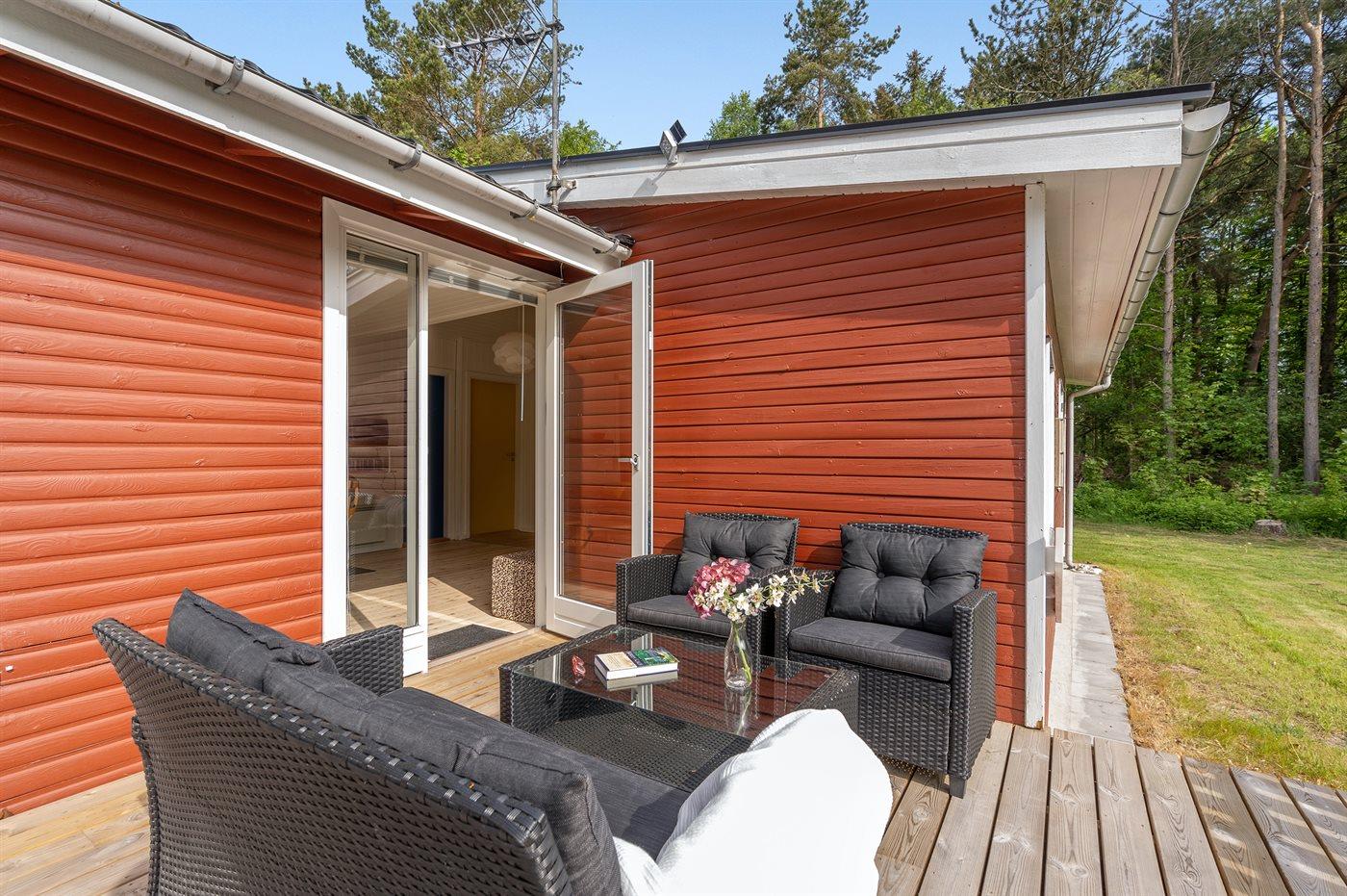 Skønt og velholdt feriehus med store, pæne terrassearealer beliggende på ugenert grund med kort afstand til indkøb, restaurant og Hous hyggelige havnemiljø.