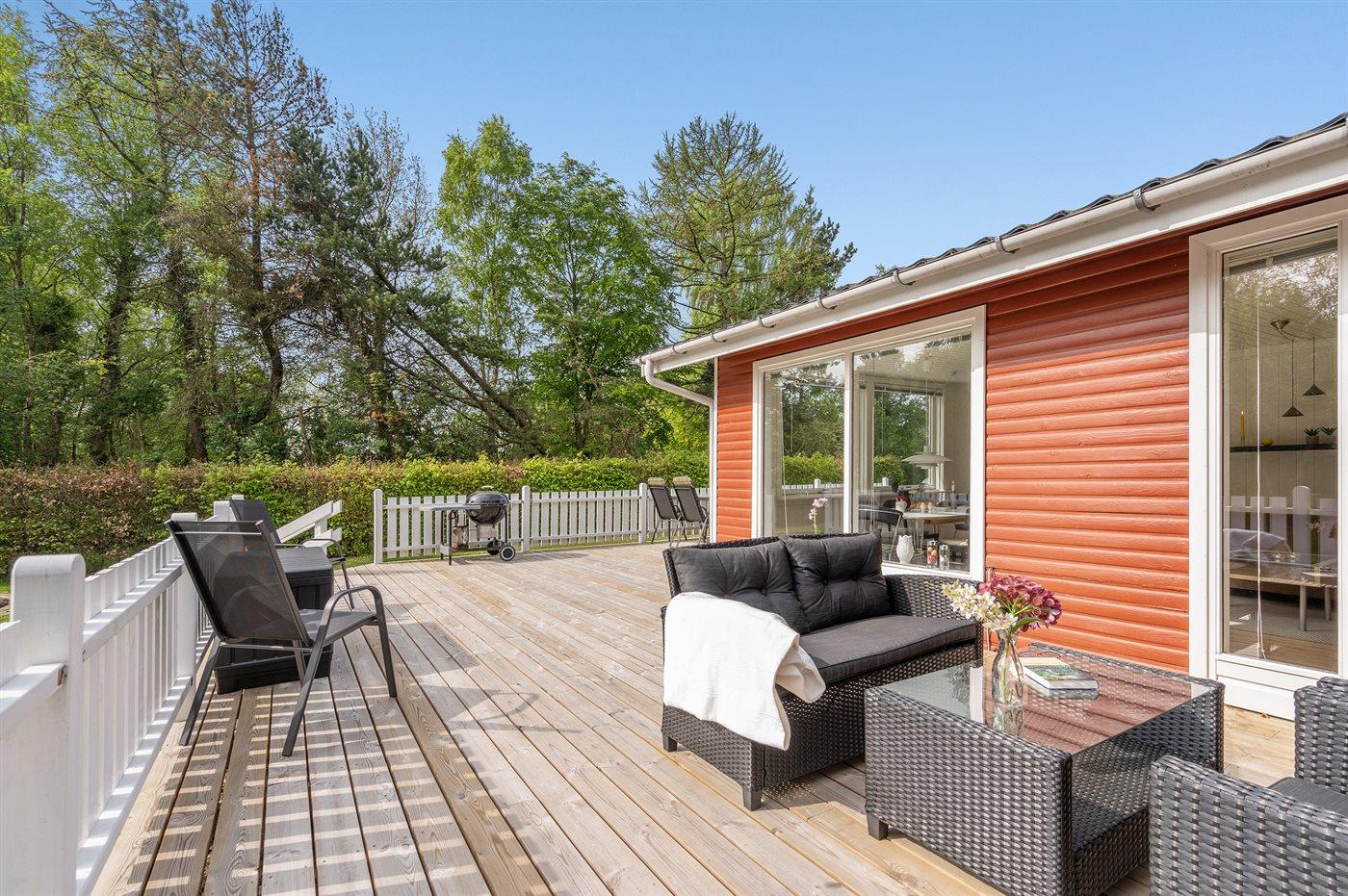Charmerende feriehus i Hou med stor terrasse og kort afstand til havn og strand.