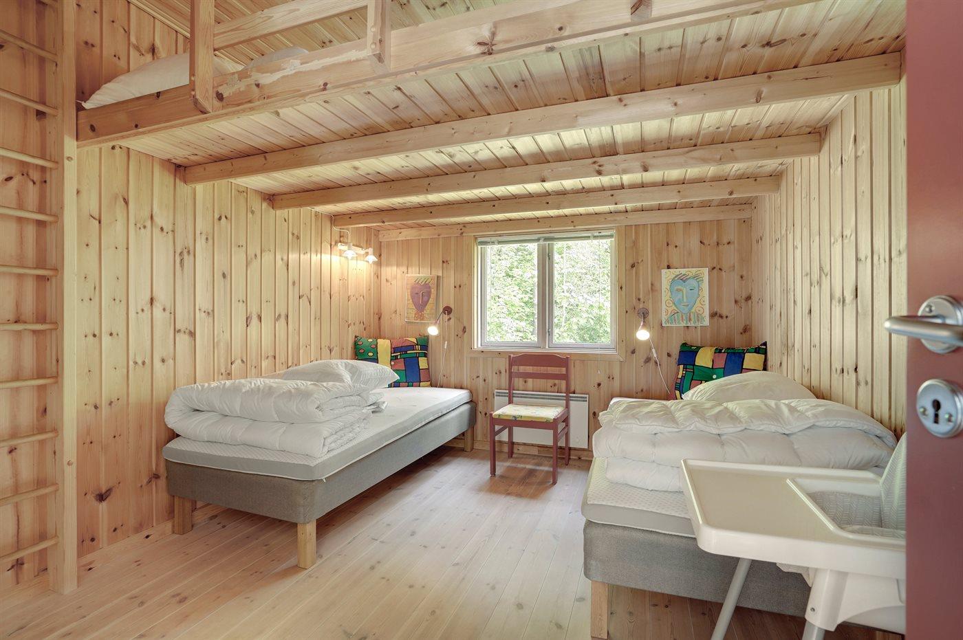 Der er i alt 3 soveværelser. Sovepladserne fordeler sig på: 4 sovepladser i dobbeltsenge. 2 sovepladser i enkeltsenge. Derudover er der 1 stk. barneseng.