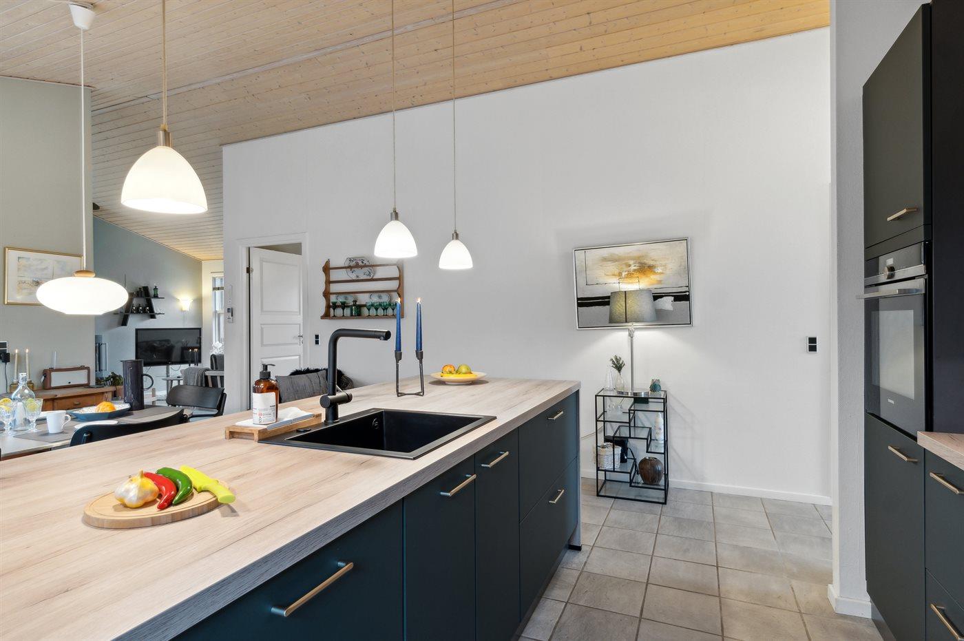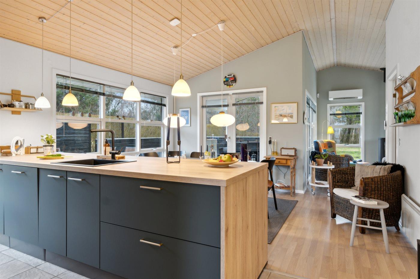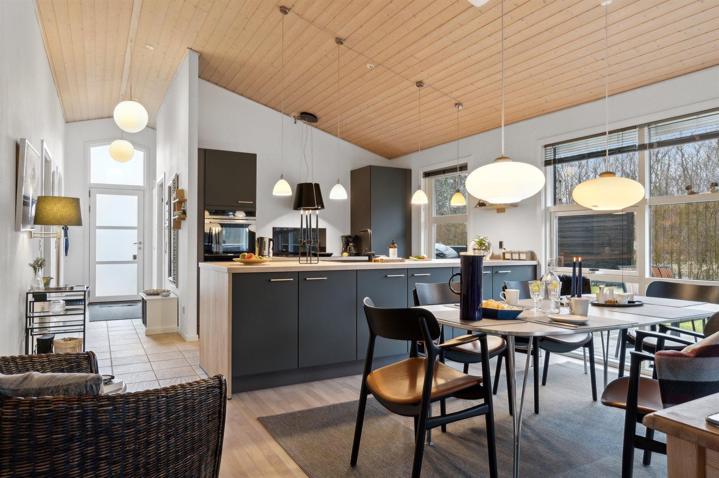 Køkkenet er udstyret med 1 køleskab. Der er 4 keramiske kogeplader, varmluftovn, mikrobølgeovn samt opvaskemaskine.