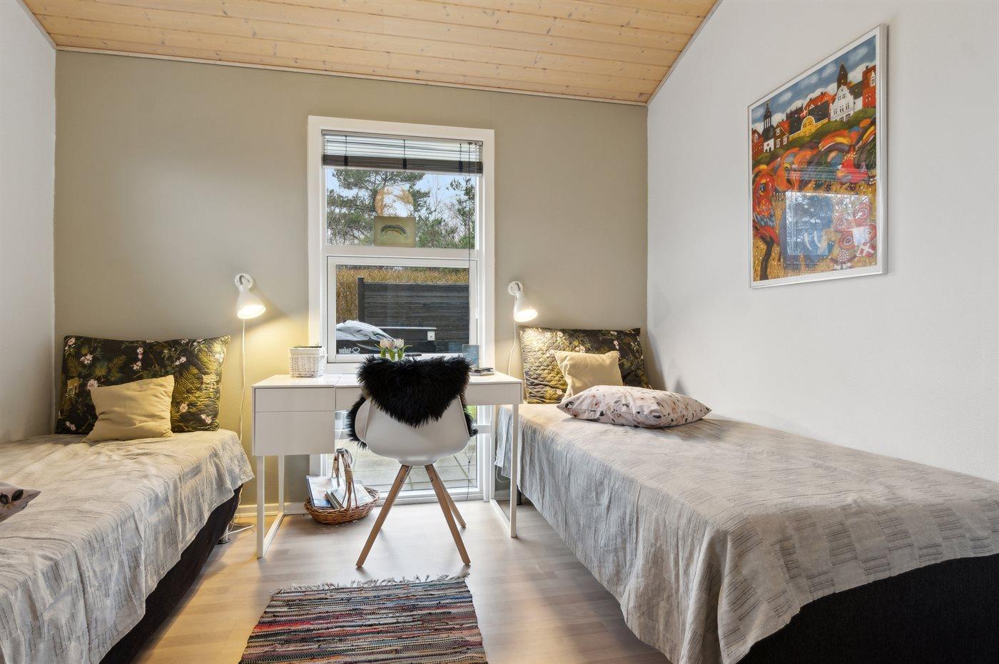 Der er i alt 3 soveværelser. Sovepladserne fordeler sig på: 4 sovepladser i dobbeltsenge. 2 sovepladser i enkeltsenge. Derudover er der 1 stk. barneseng.