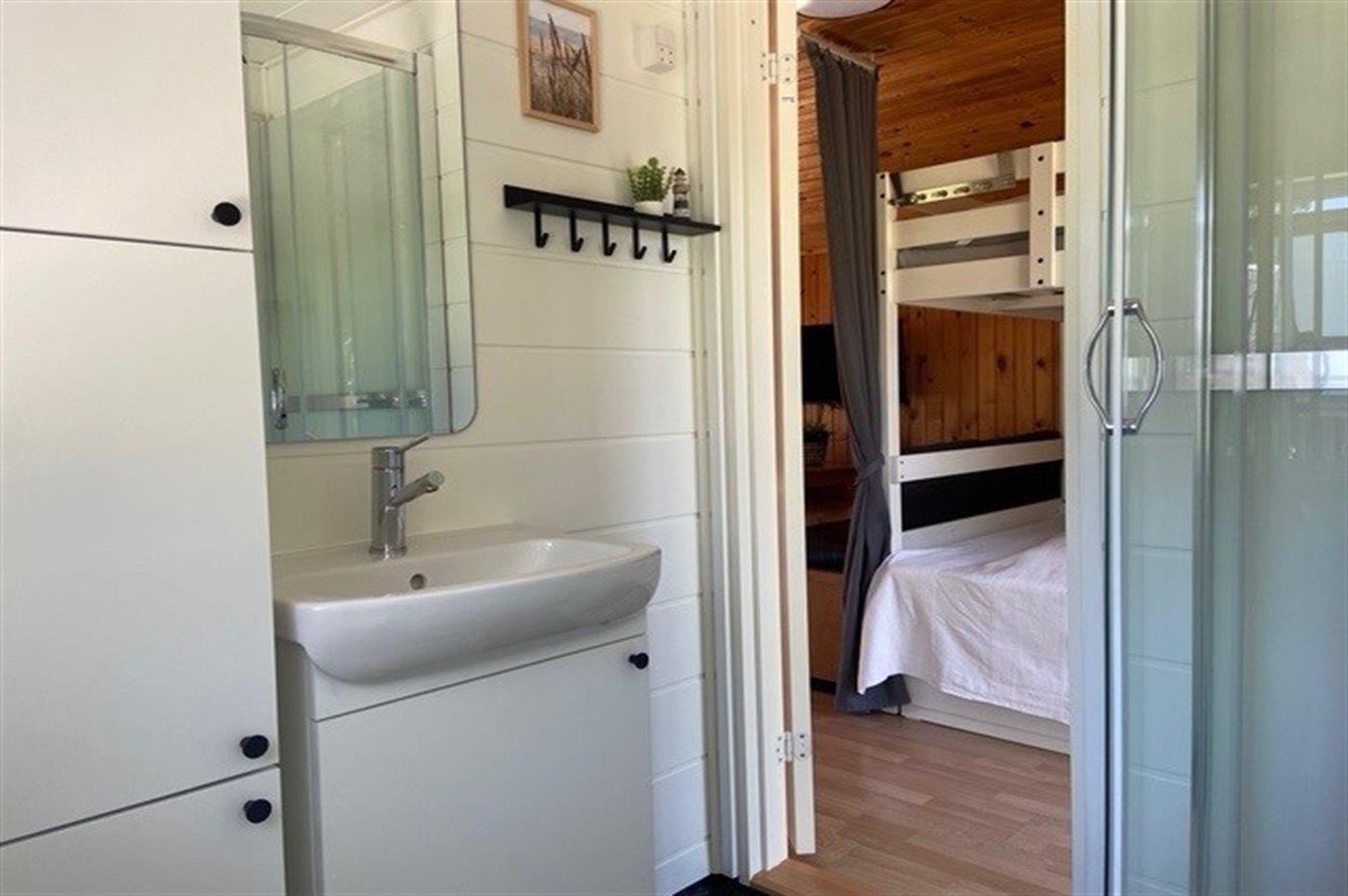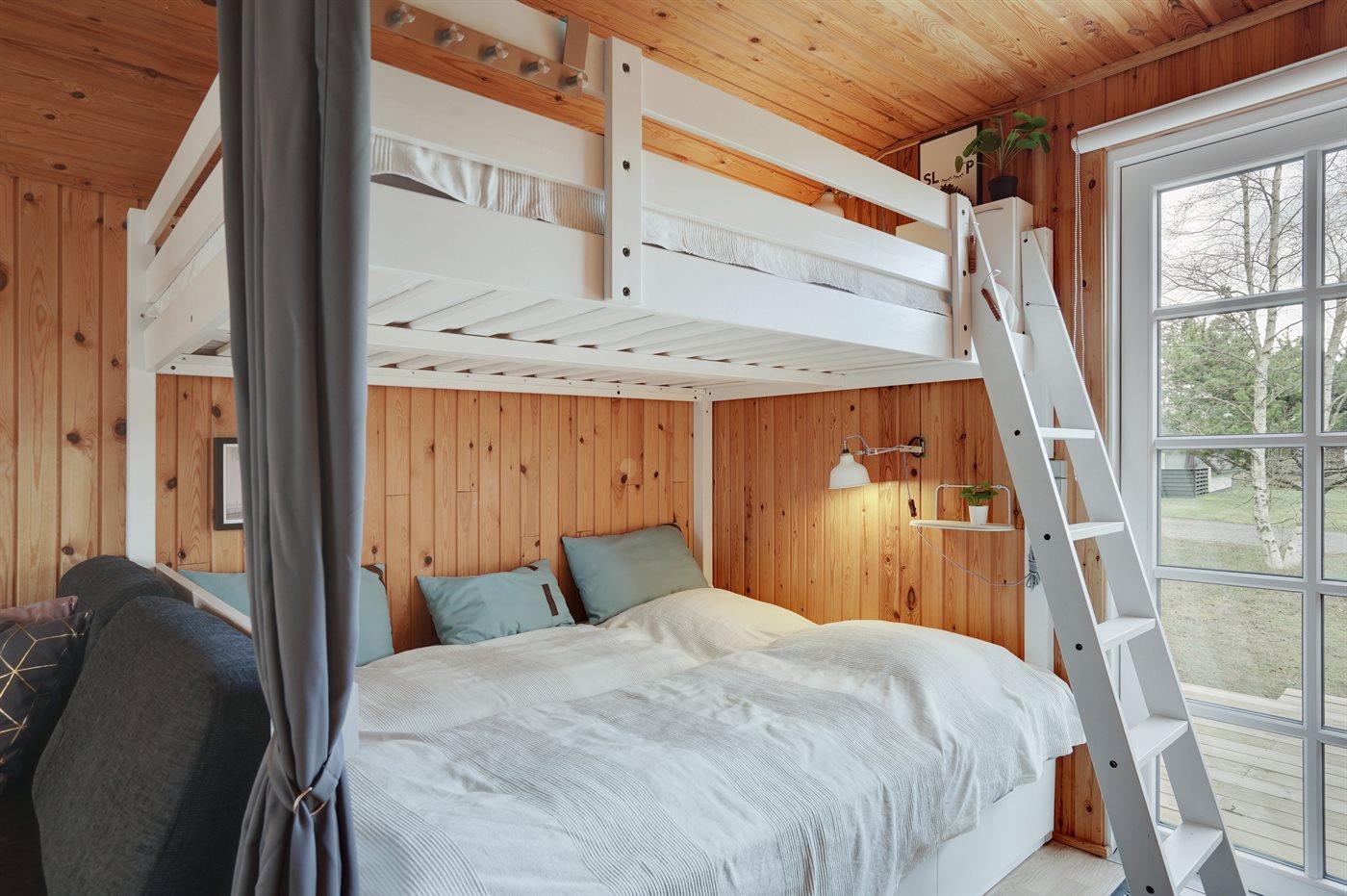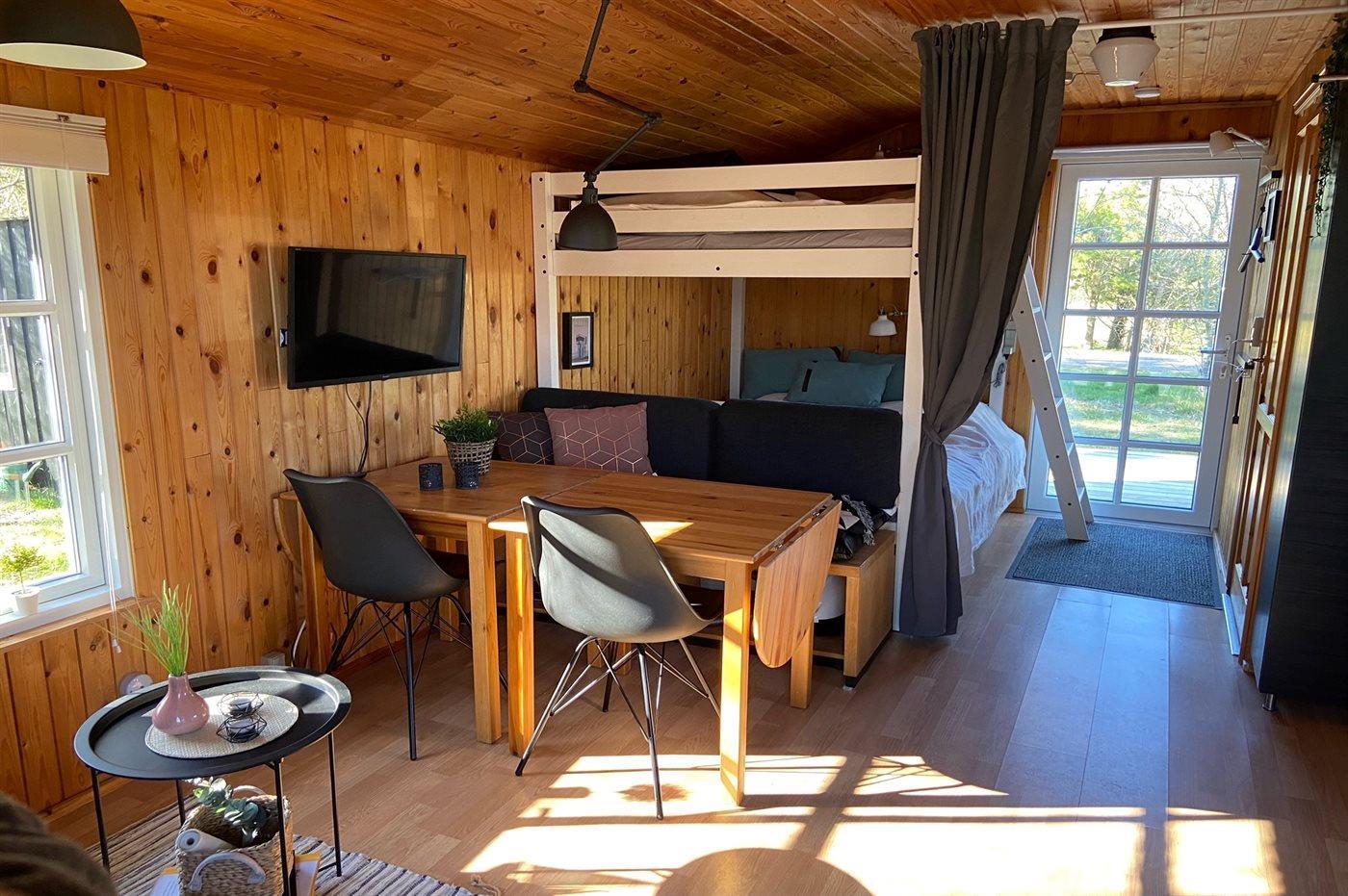 Der er to gode sovepladser i en køjeseng, som er 160 cm bred. Der er yderligere to sovepladser i overkøjen, som er velegnet til små børn. Huset anbefales dog primært til 2 personer.