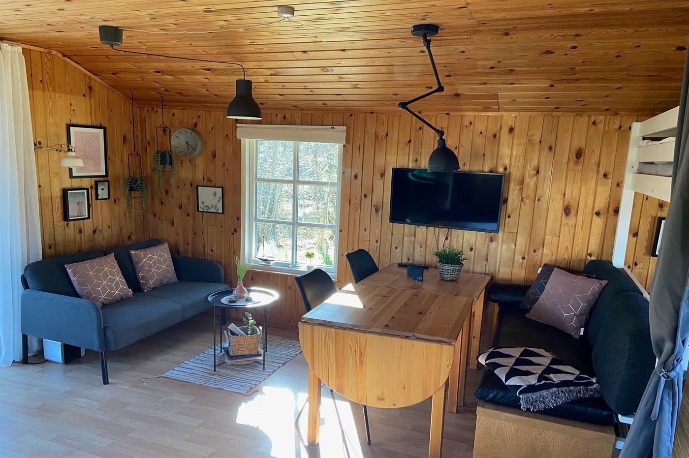 Skønt lille sommerhus, der er flot renoveret bl.a med nyt badeværelse (2025) og smart indrettet med alt samlet i et rum: stue - soveværelse - køkken.