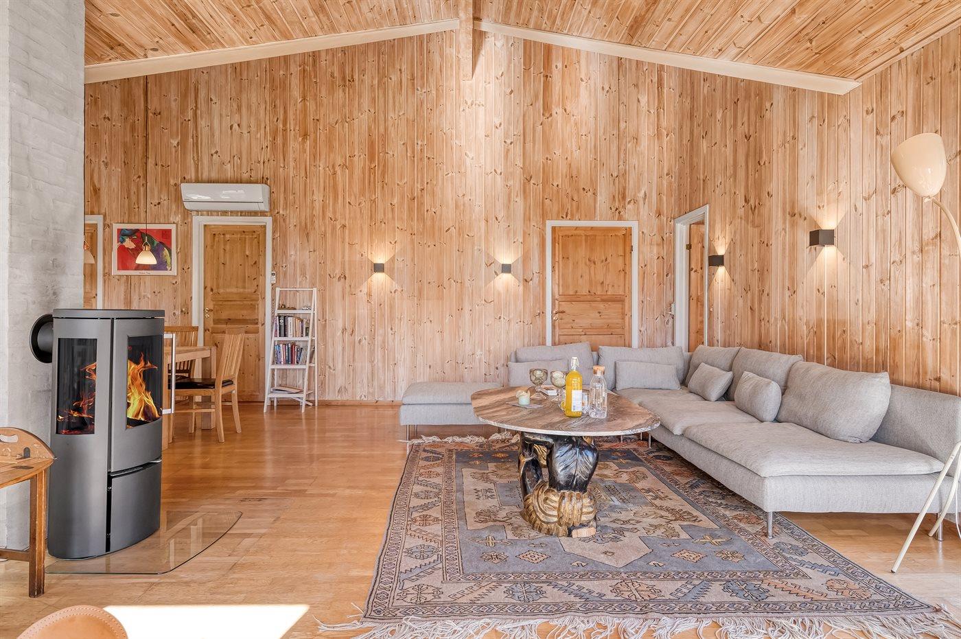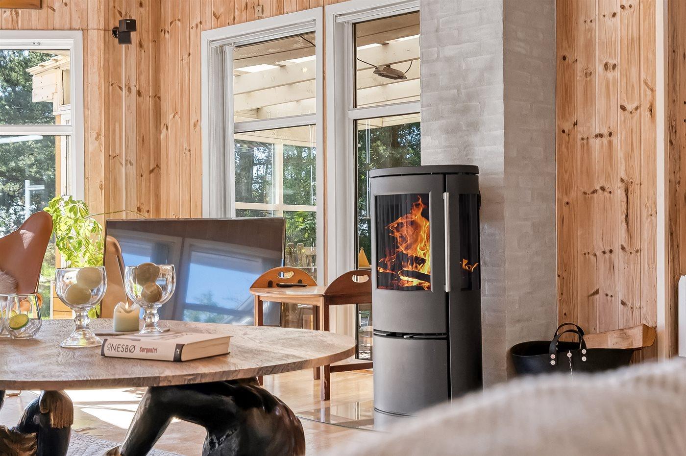 Sommerhuset har trådløst internet og TV med Chromecast. Stuen er udstyret med en hyggelig brændeovn.