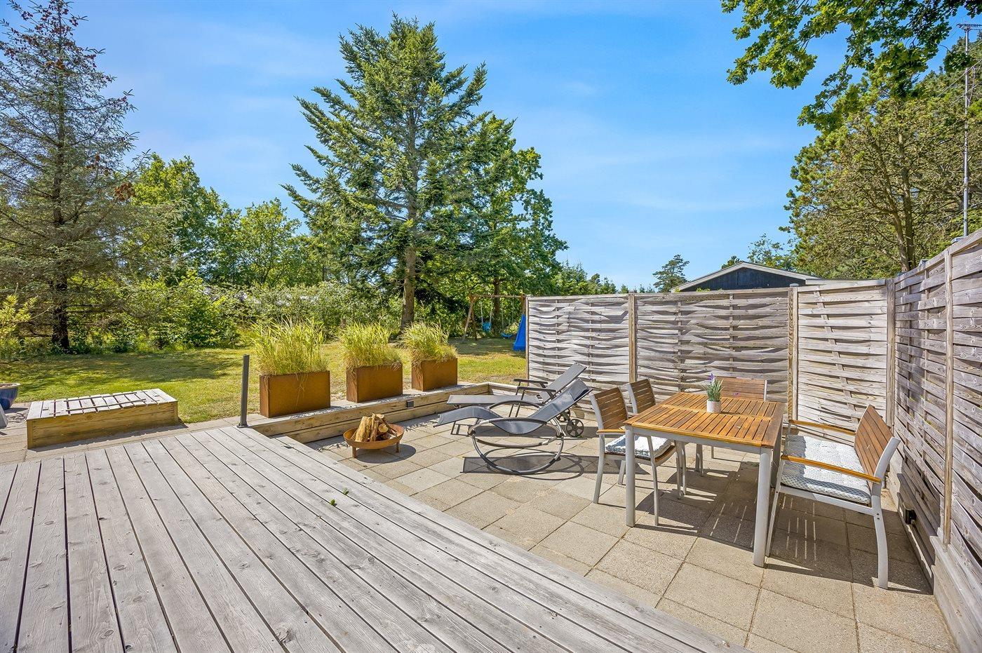 Ferieboligen er beliggende på en 1149 m² stor havegrund. Der er 650 m til havet. Der er 6730 m til fjorden. Nærmeste forretning er beliggende i en afstand af 1150 m. Der er en golfbane i en afstand af 6270 m. Til ferieboligen hører åbent terrasseareal. Desuden er der overdækket terrasse. Gynge. Sandkasse. Rutchebane. Grill til rådighed. Der er installeret stik til opladning af elbil. Parkering ved ferieboligen.