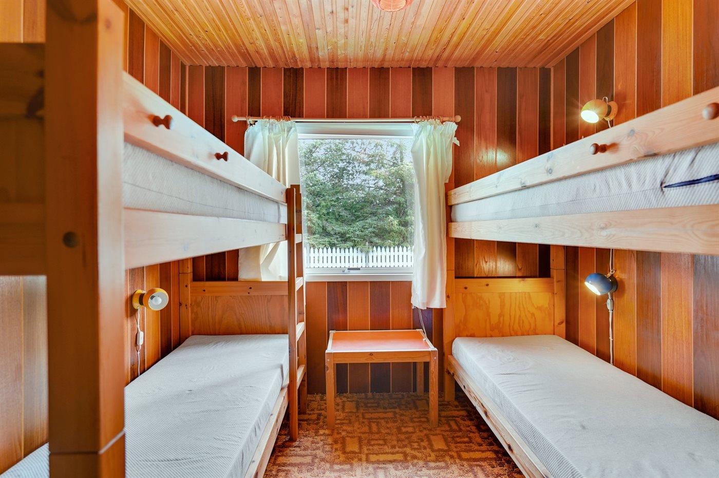 Der er i alt 2 soveværelser. Sovepladserne fordeler sig på: 2 sovepladser i dobbeltseng. 1 soveplads i enkeltseng. 4 sovepladser i køjesenge.