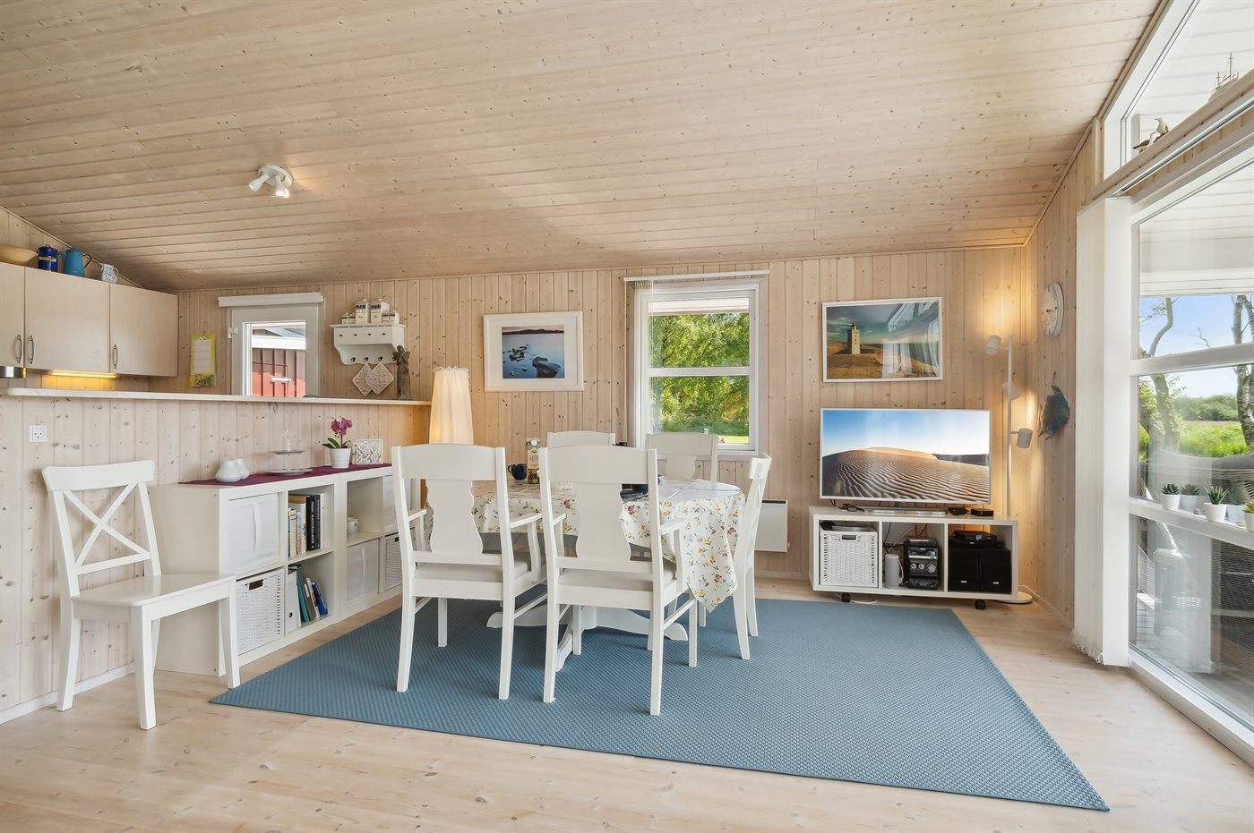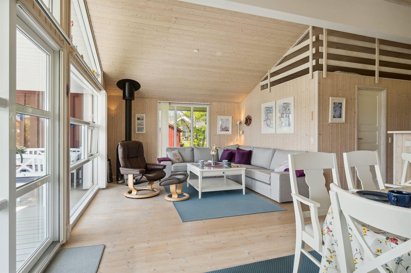 Indvendig fremstår sommerhuset lyst og moderne og har et stort køkken/alrum og stue, hvor udsigten også er i højsædet. Huset har en god planløsning og passer rigtig fint til en familie, som ønsker at holde ferie i denne fantastiske idyl, som huset og beliggenheden byder på.