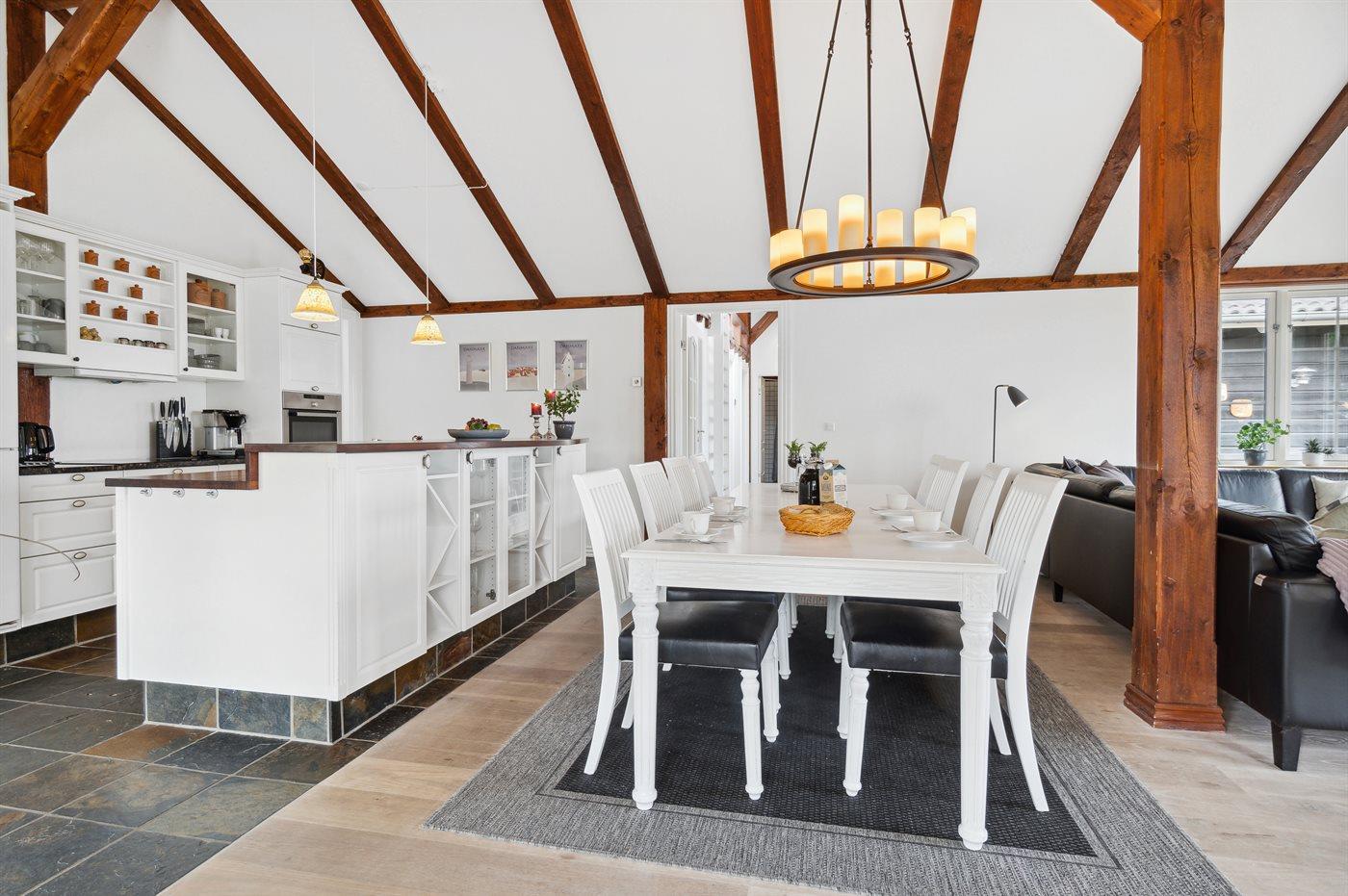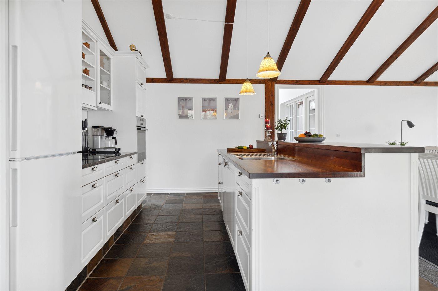 Køkkenet er udstyret med 1 køleskab. Der er 4 induktionskogeplader, varmluftovn, mikrobølgeovn samt opvaskemaskine.