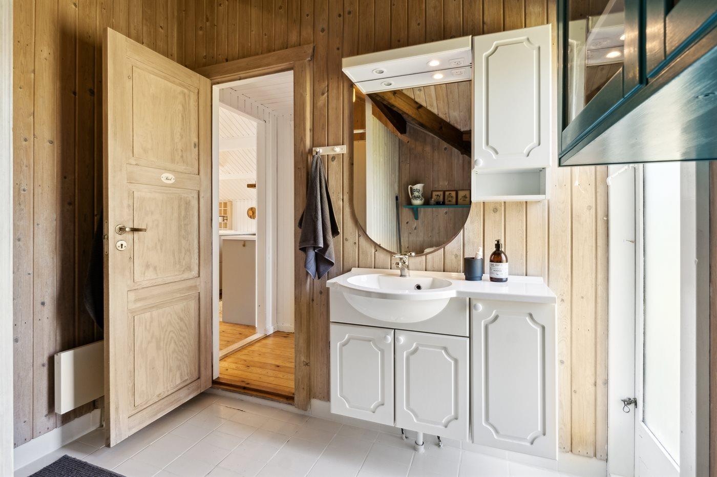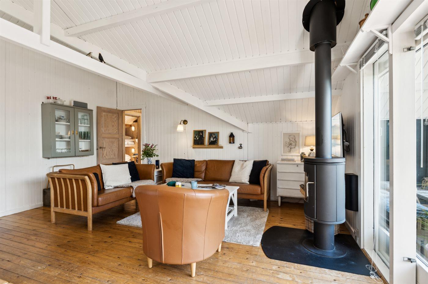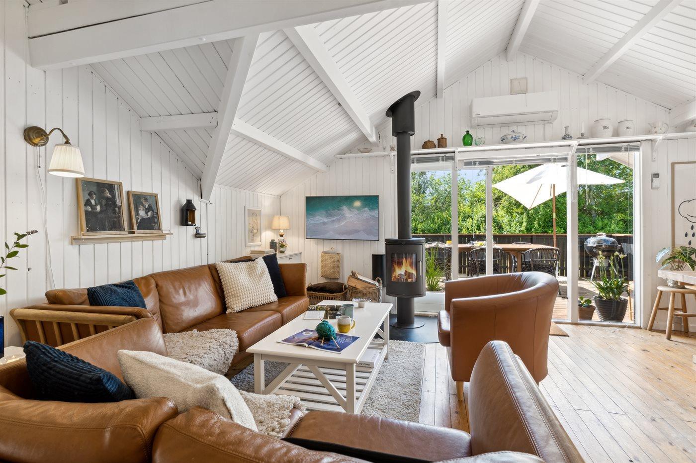 Indvendig fremstår sommerhuset i rigtig fin stand og har gennemgået en stor modernisering i 2023, men med respekt for husets oprindelige detaljer - dette giver en god og hyggelig atmosfære. Husets hjerte er det dejlige nye køkken fra 2023 og stue i ét med godt lysindfald og direkte adgang til den skønne terrasse. Sommerhuset er rigtig godt indrettet, og her er god plads til f.eks. en familie med 2-3 børn eller to par - mulighederne er mange i dette skønne sommerhus.