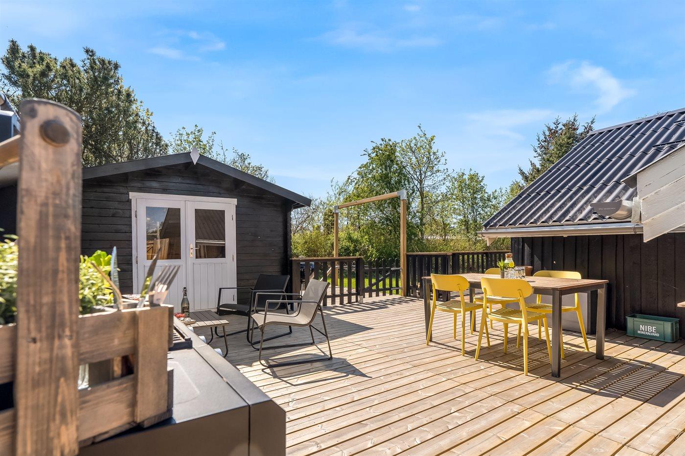 Ud til Kattegats smukke kyststrækning lige imellem feriebyerne Hou og Hals ligger dette skønne og velholdte sommerhus i et roligt og naturskønt område. Sommerhuset ligger på en dejlig grund med god plads til at boltre sig, og for en familie med hund er dette sommerhus rigtig fint. Derudover er beliggenheden også ganske ugeneret. Her findes et skønt terrasseareal, som også delvist er overdækket, og hvorfra det er muligt at nyde solen og samtidigt have et godt overblik over haven, imens børnene hygger sig.