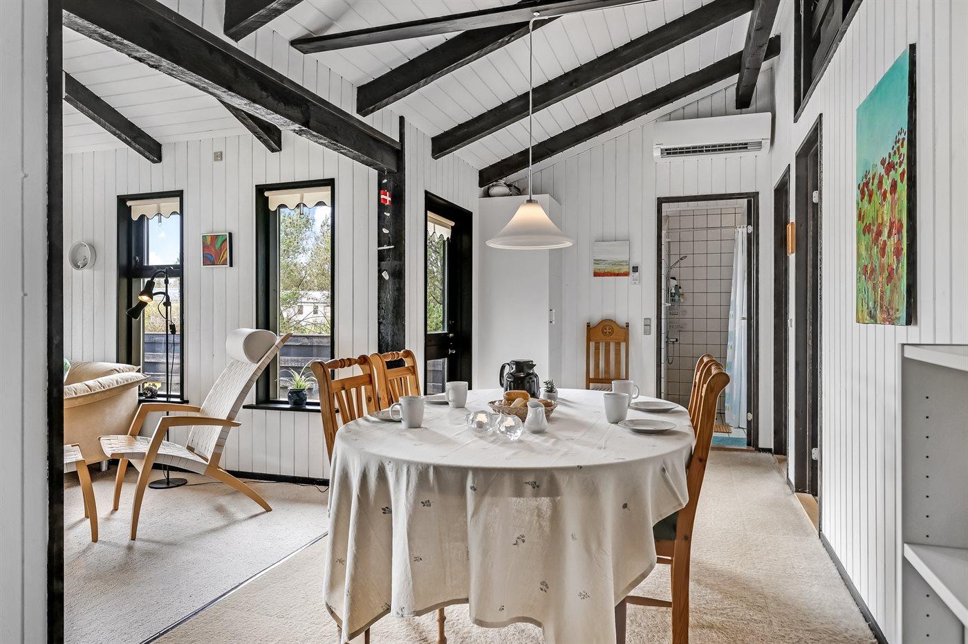 Dette sommerhus i Hou byder på en unik blanding af komfort og charme. Fra det åbne plan med spiseplads til de hyggelige soveværelser, vil du føle dig hjemme fra det øjeblik du træder indenfor. Udsigten fra terrassen inviterer dig til at slappe af efter en dag med udforskning eller bare nyde den rolige atmosfære ved vandet.