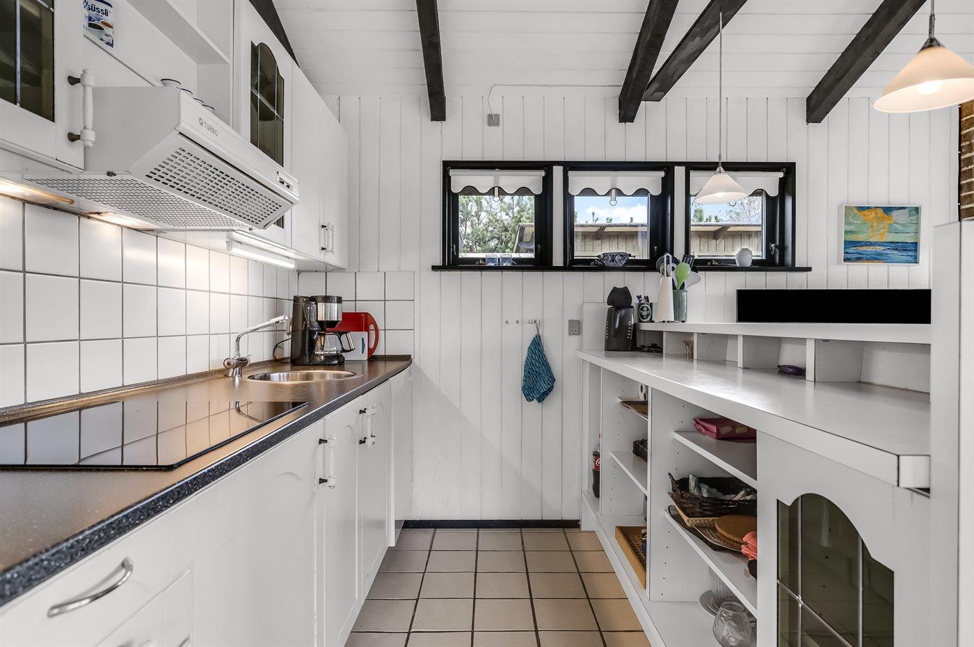 Køkkenet er udstyret med 1 køleskab. Der er 4 keramiske kogeplader, varmluftovn, mikrobølgeovn samt opvaskemaskine.
