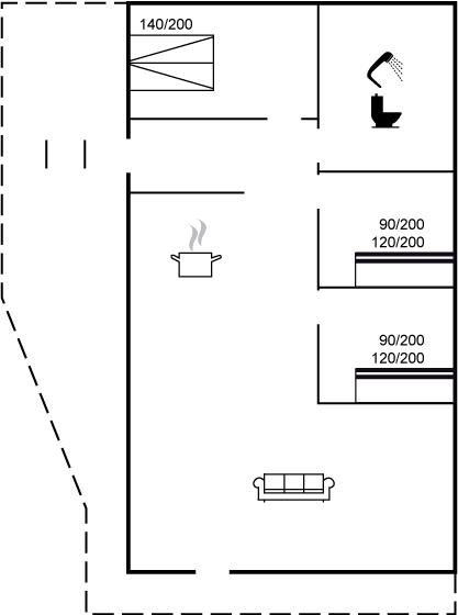 Der er i alt 3 soveværelser. Sovepladserne fordeler sig på: 2 sovepladser i dobbeltseng. 4 sovepladser i køjesenge.