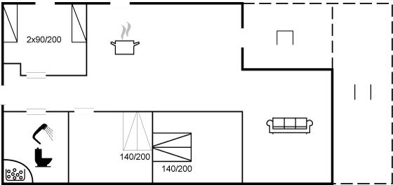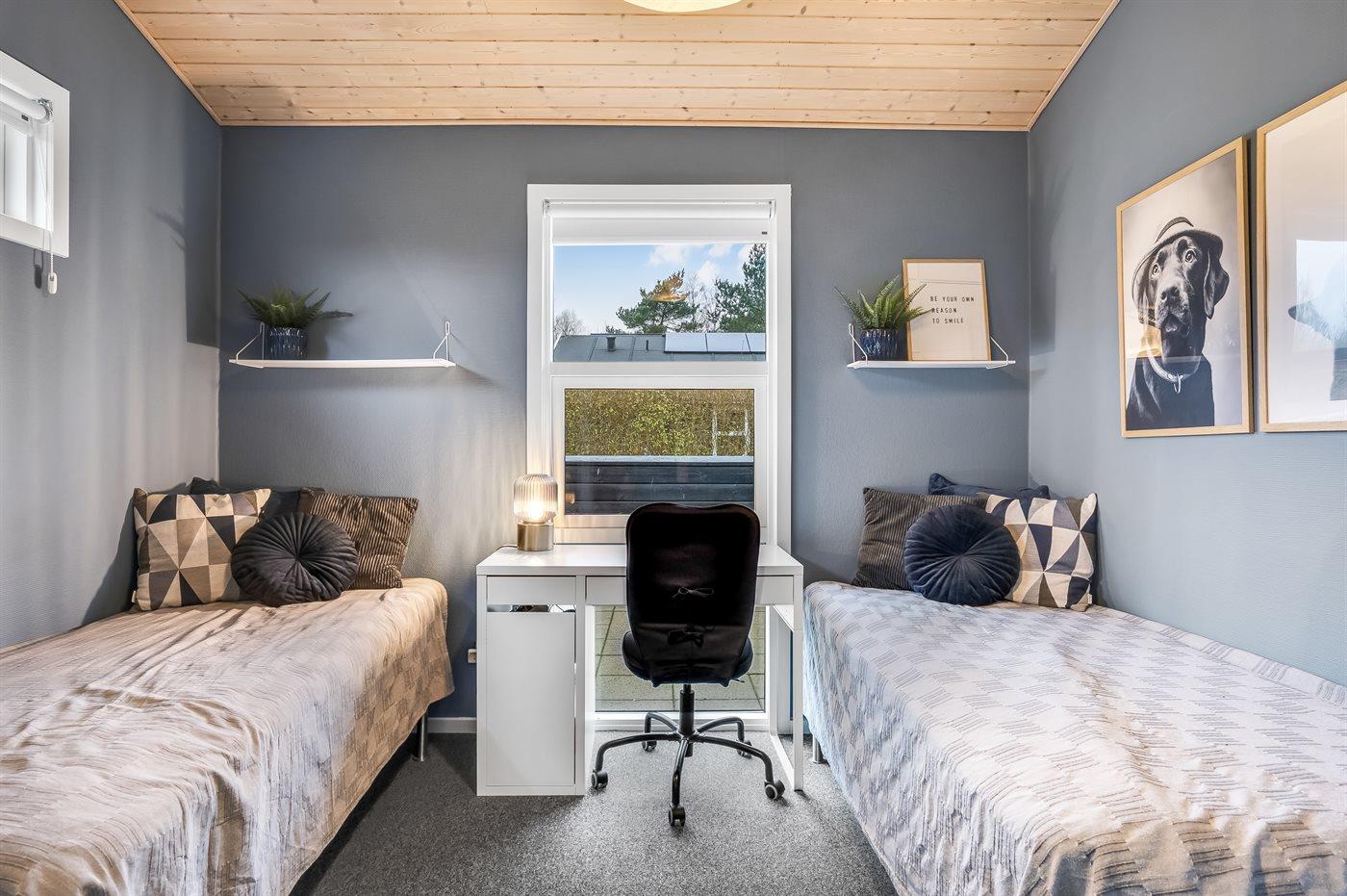 Der er i alt 3 soveværelser. Sovepladserne fordeler sig på: 4 sovepladser i dobbeltsenge. 2 sovepladser i enkeltsenge. Derudover er der 1 stk. barneseng.