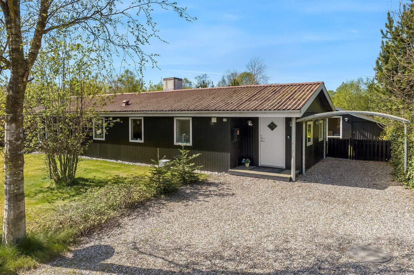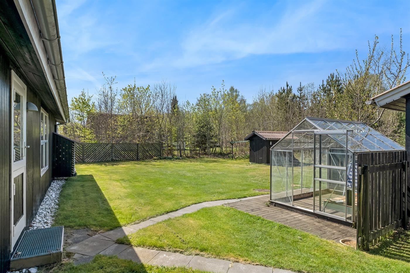 Ferieboligen er beliggende på en 1085 m² stor naturgrund. Grunden er indhegnet. Der er 2170 m til havet. Der er 7300 m til fjorden. Nærmeste forretning er beliggende i en afstand af 1600 m. Der er en golfbane i en afstand af 5500 m. Til ferieboligen hører åbent terrasseareal. Desuden er der overdækket terrasse. Grill til rådighed. Parkering ved ferieboligen.