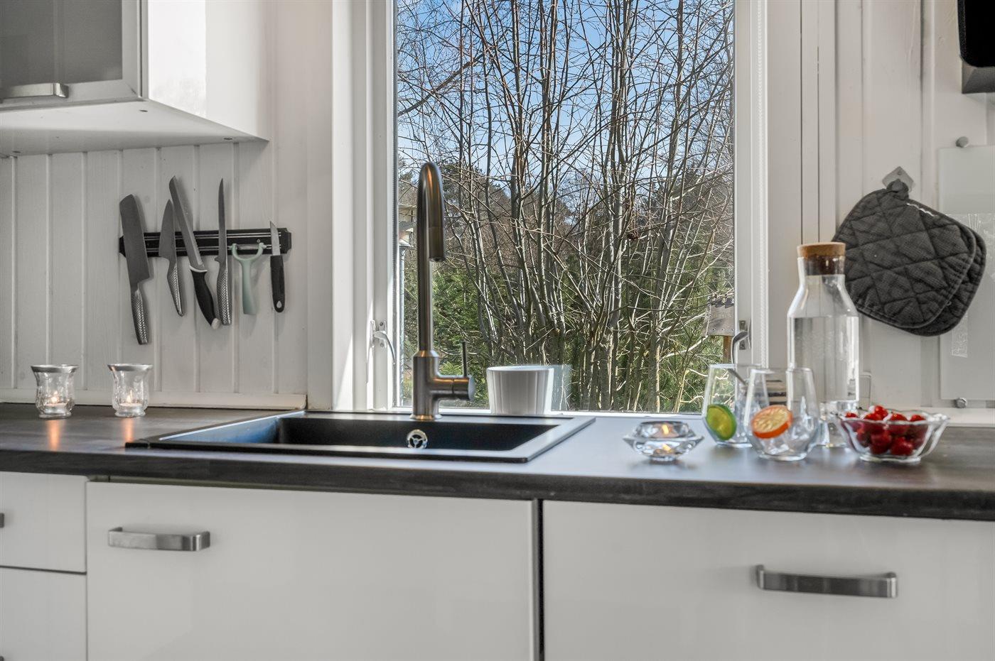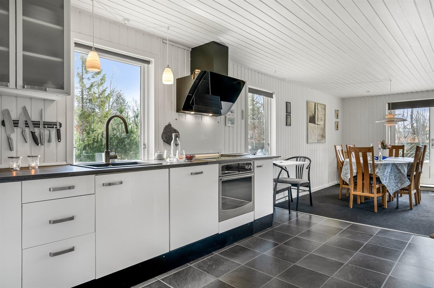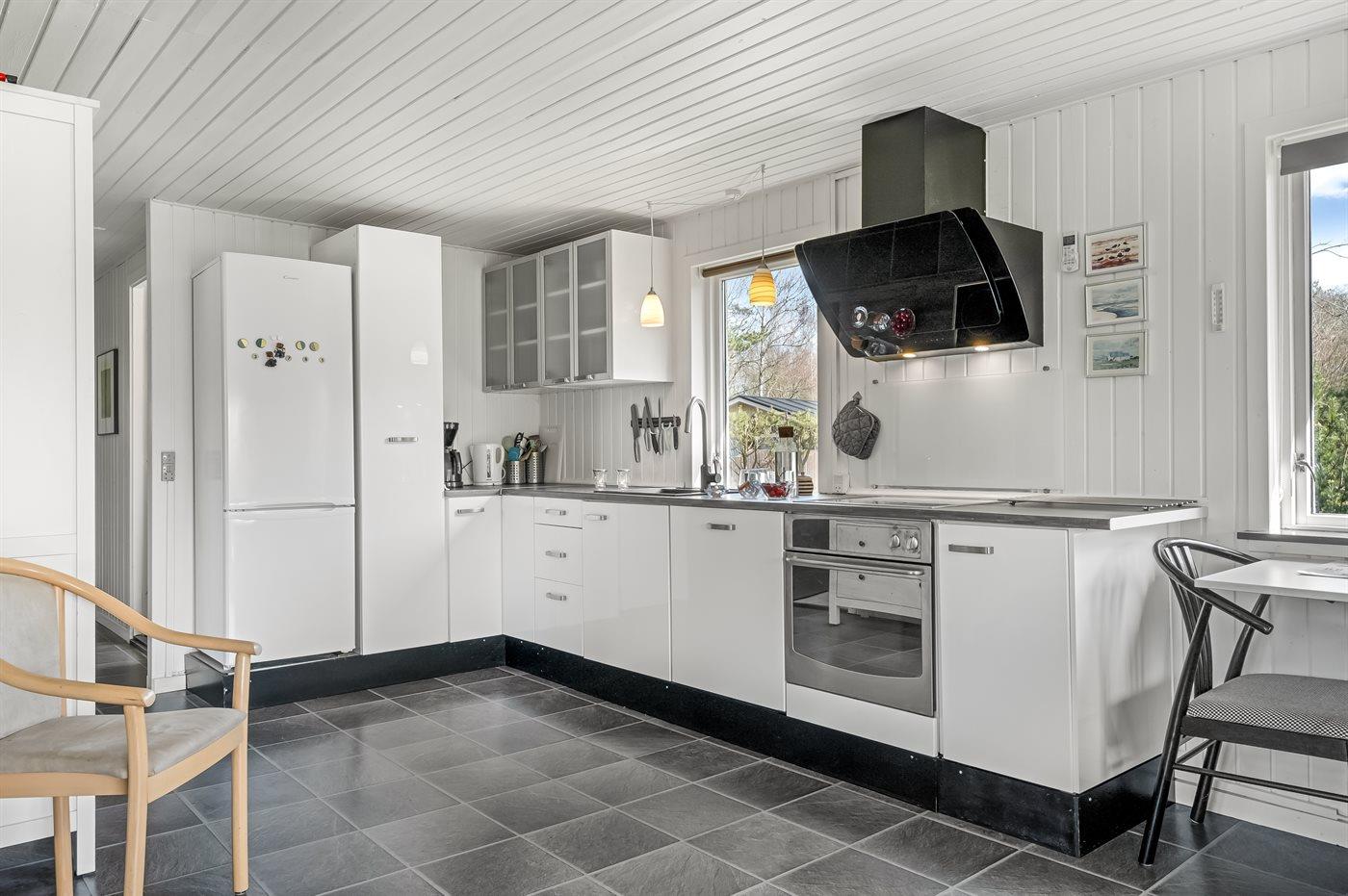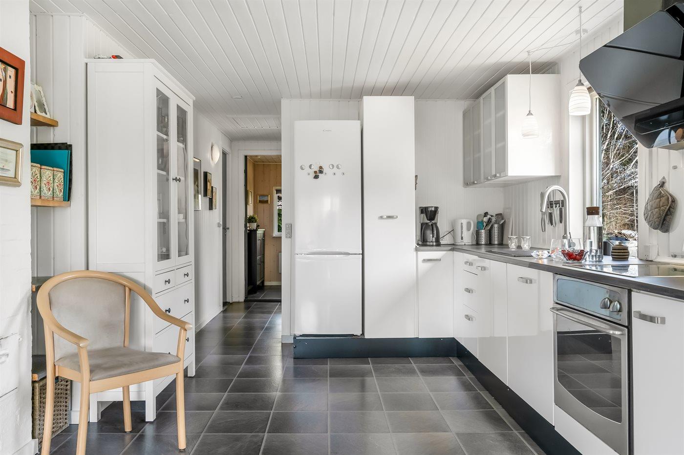 Køkkenet er udstyret med 1 køleskab. Der er 4 keramiske kogeplader, varmluftovn samt opvaskemaskine.