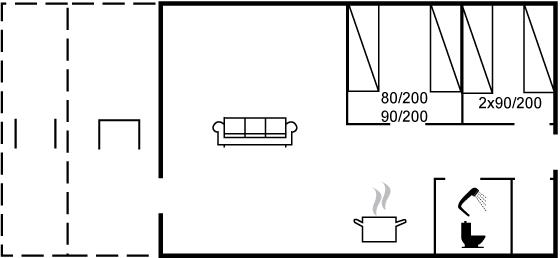 Der er i alt 2 soveværelser. Sovepladserne fordeler sig på: 4 sovepladser i enkeltsenge.