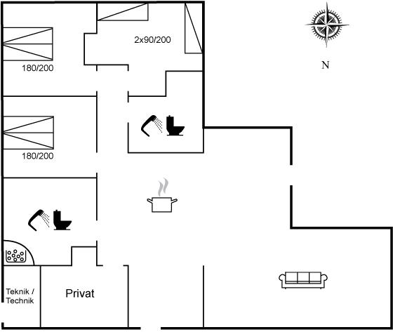 Sommerhuset egner sig til 8 personer. Ferieboligen er på 150 m² og er bygget i 2009. Det er ikke tilladt at medbringe husdyr. Ferieboligen er udstyret med 1 energivenlig luft til vand varmepumpe. Hele ferieboligen har gulvvarme. Ferieboligen har vaskemaskine. Tørretumbler. Frysekapacitet på 64 liter. Der er desuden brændeovn. Til de små er der 2 stk. barnestole. Puslebord.
