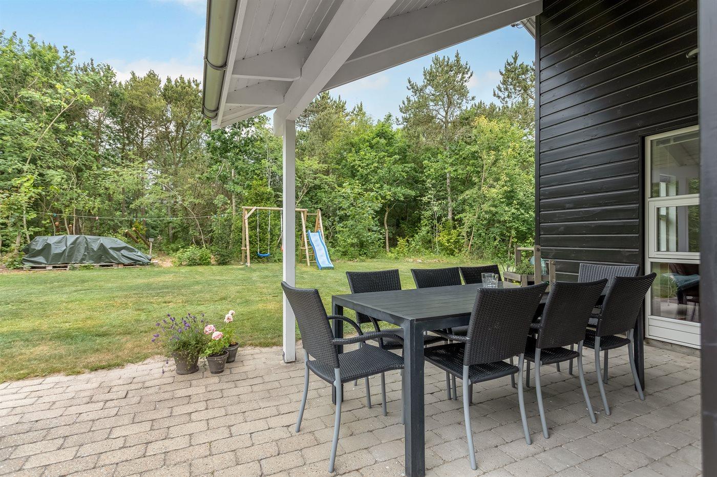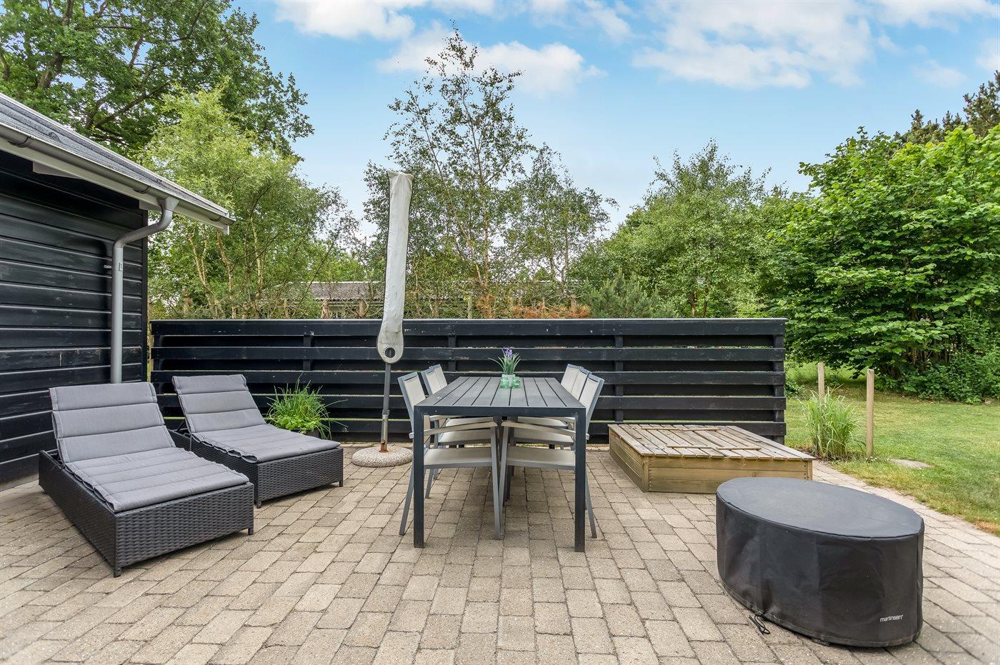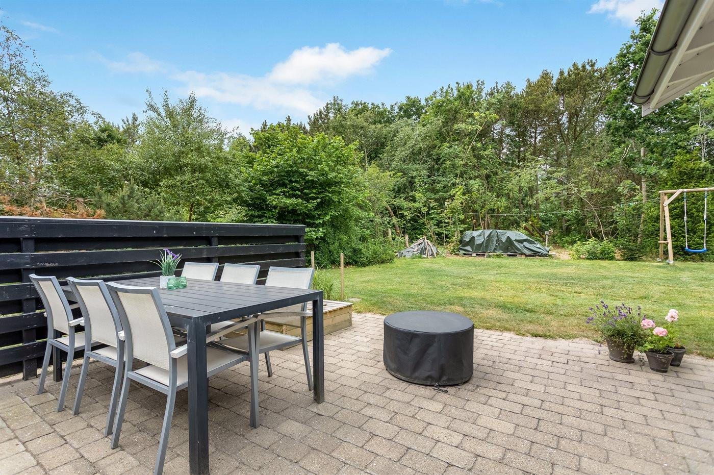 Ferieboligen er beliggende på en 1298 m² stor havegrund. Der er 1500 m til havet. Nærmeste forretning er beliggende i en afstand af 1800 m. Der er en golfbane i en afstand af 7500 m. Til ferieboligen hører åbent terrasseareal. Desuden er der overdækket terrasse. Gynge. Sandkasse. Rutchebane. Bålsted. Grill til rådighed. Der er installeret stik til opladning af elbil. Type 2 stik. Med 11 kW ladeeffekt. Parkering ved ferieboligen.