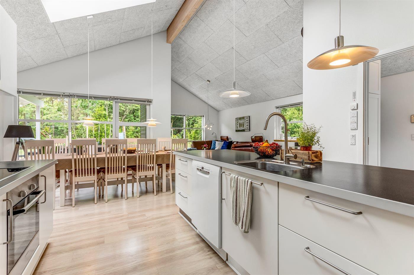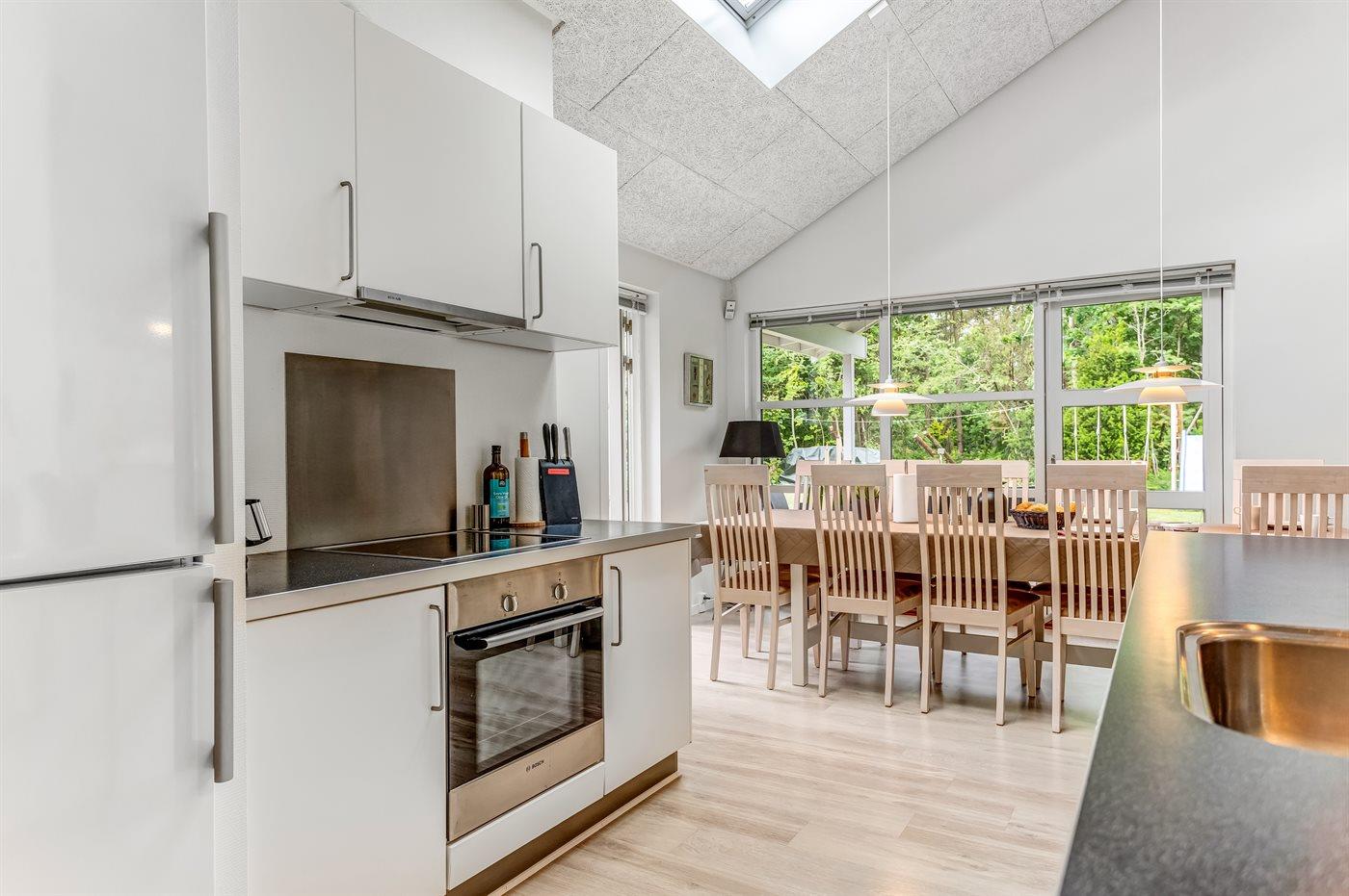 Køkkenet er udstyret med 1 køleskab. Der er 4 keramiske kogeplader, varmluftovn, mikrobølgeovn samt opvaskemaskine.