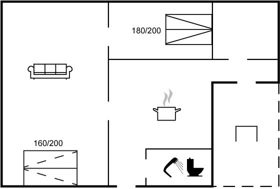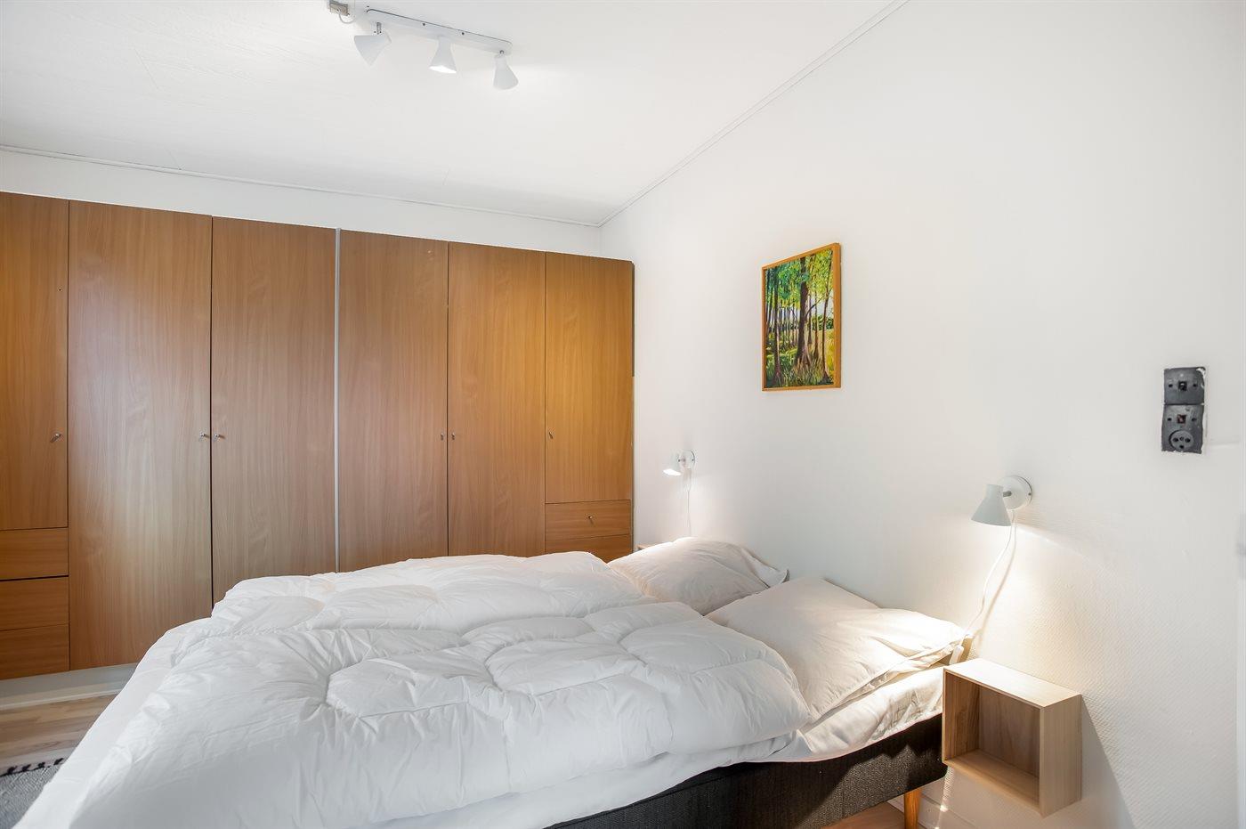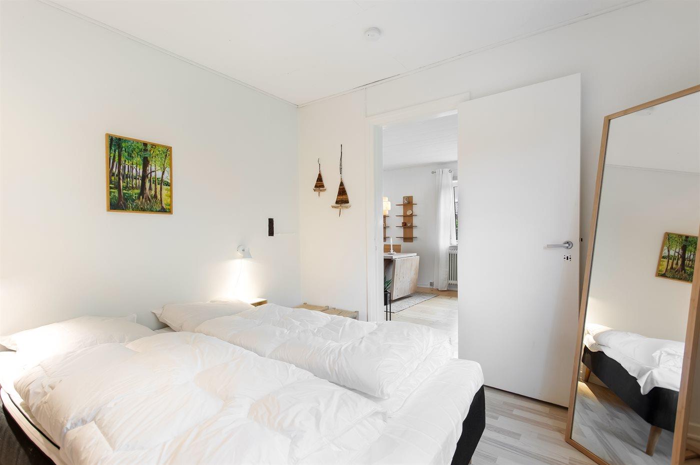 Der er i alt 1 soveværelse. Sovepladserne fordeler sig på: 2 sovepladser i dobbeltseng. 2 sovepladser i sovesofa (dobbelt). 2 af disse sovepladser befinder sig i stuen.