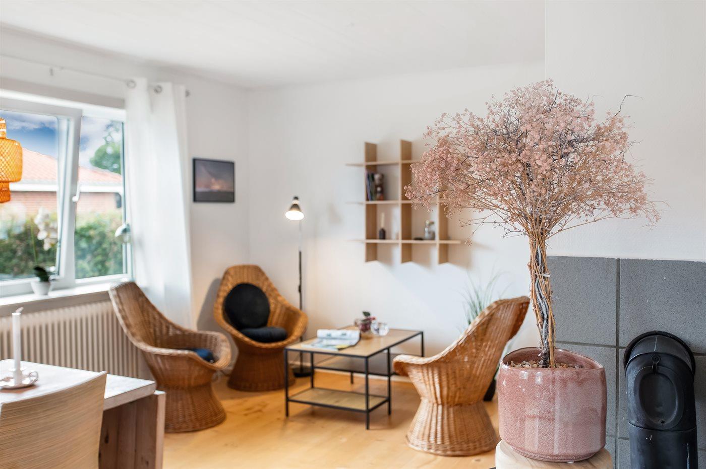 Et hyggeligt byhus, som er centralt beliggende i den charmerende havneby Hou. Her bor du i gåafstand til den hyggelige lystbådehavn, indkøbsmuligheder og byens skønne børnevenlige sandstrand.