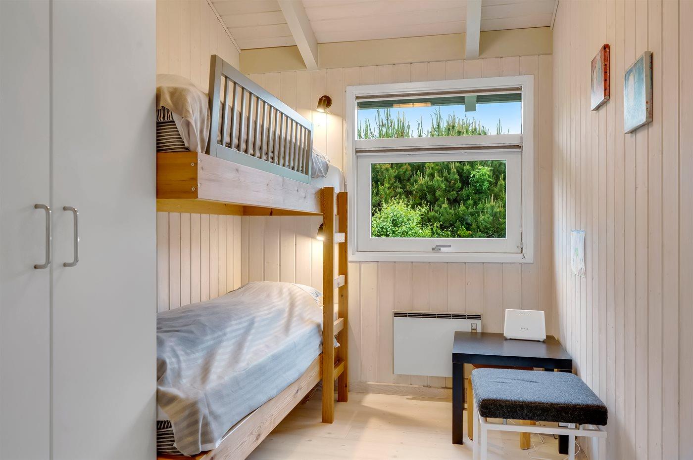 Der er i alt 3 soveværelser. Sovepladserne fordeler sig på: 4 sovepladser i dobbeltsenge. 2 sovepladser i køjeseng.